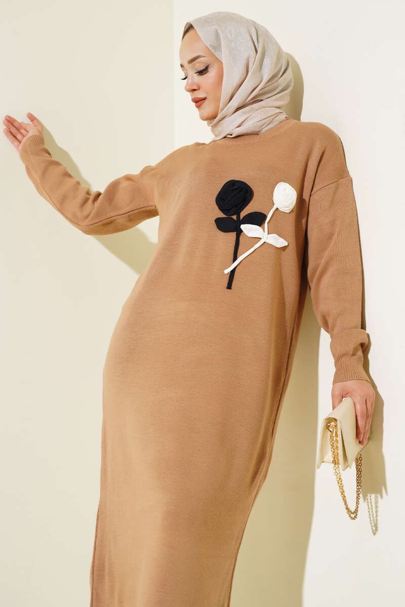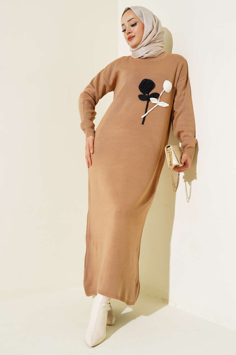 Jakarlı Kat Elbise Kahve