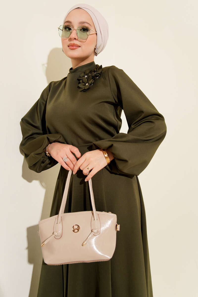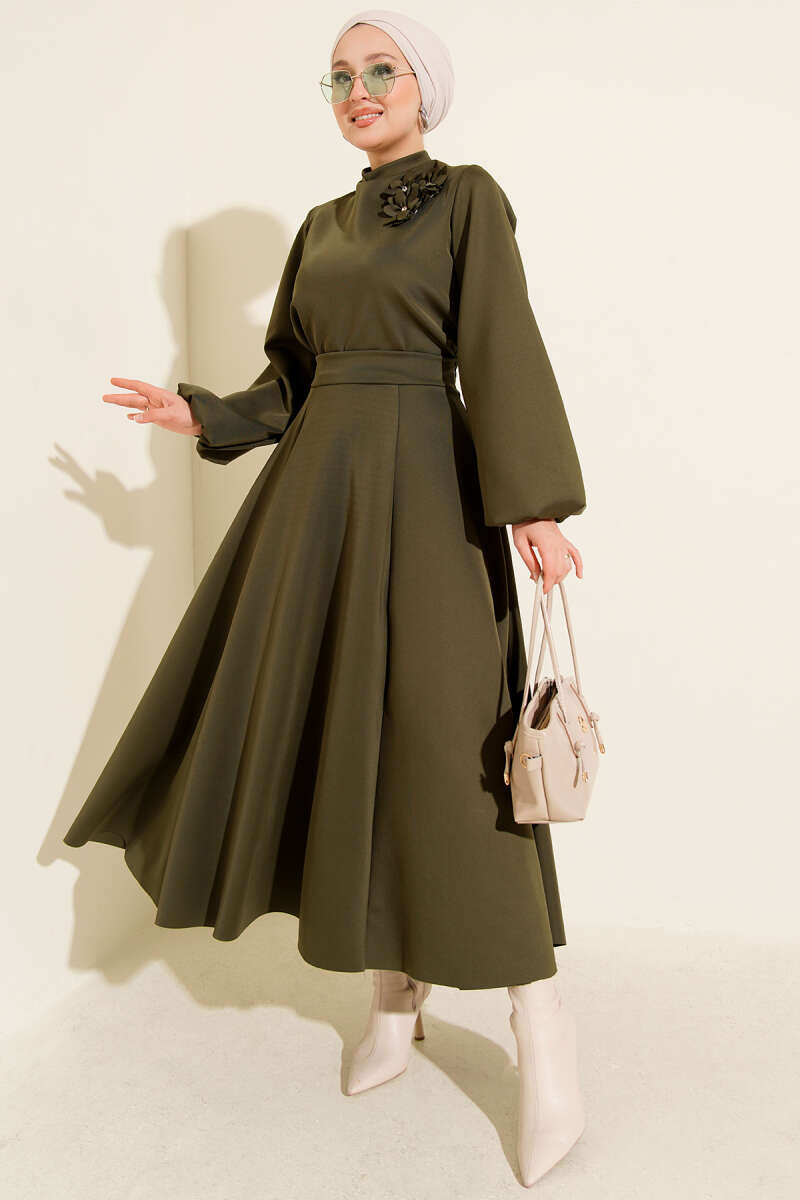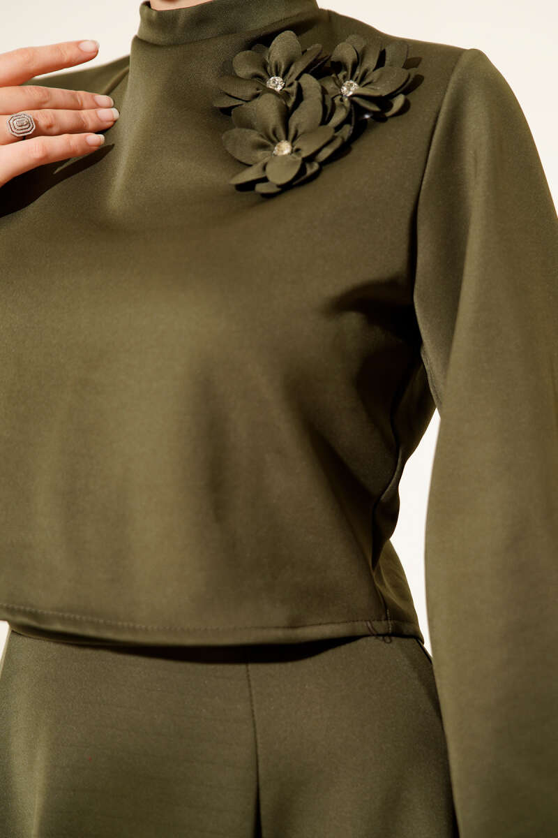 Gül İşlemeli Etekli İkili Takım Haki