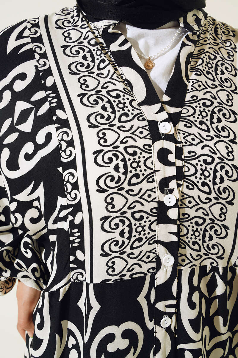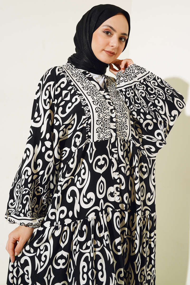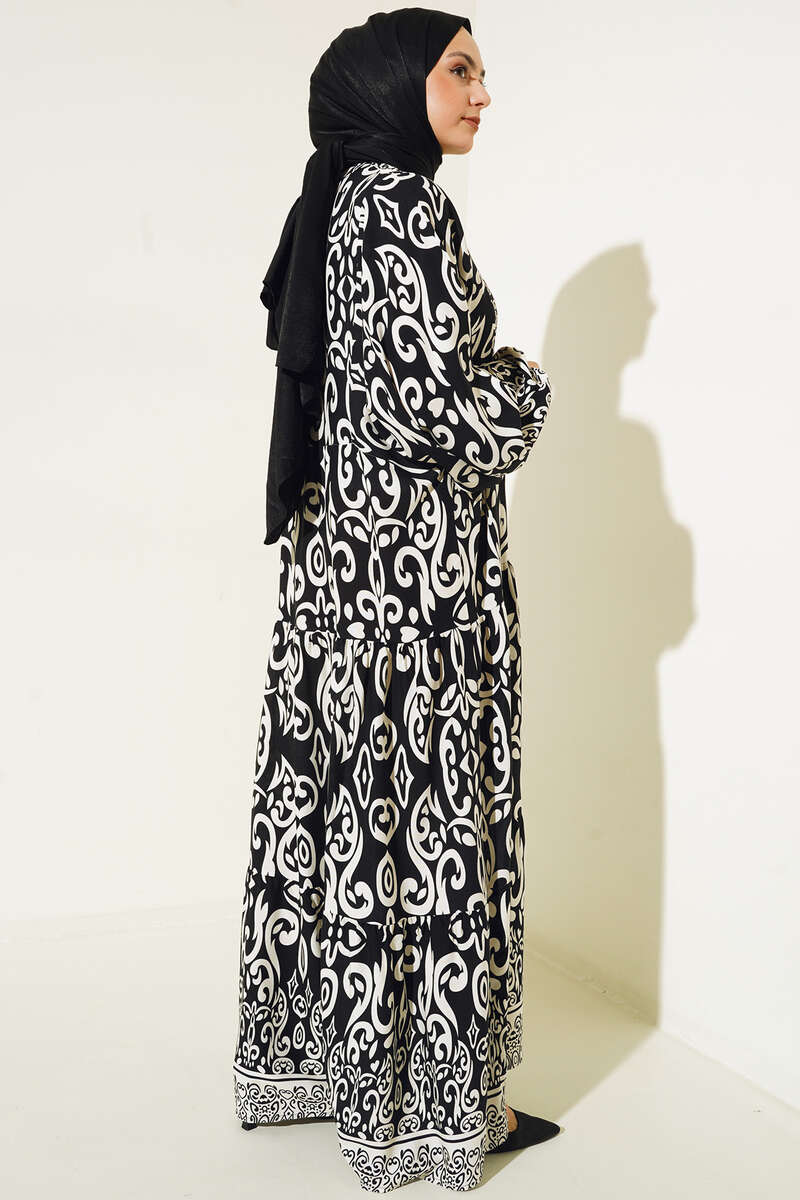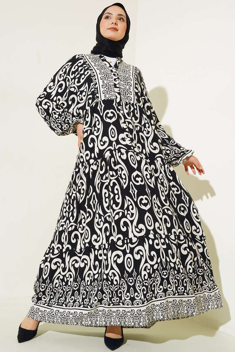 Güneş Serisi Otantik Desenli Elbise Siyah