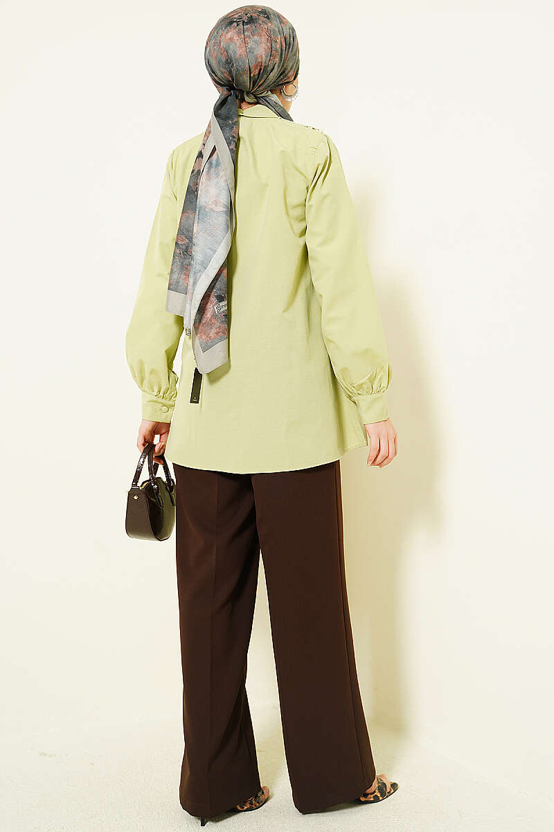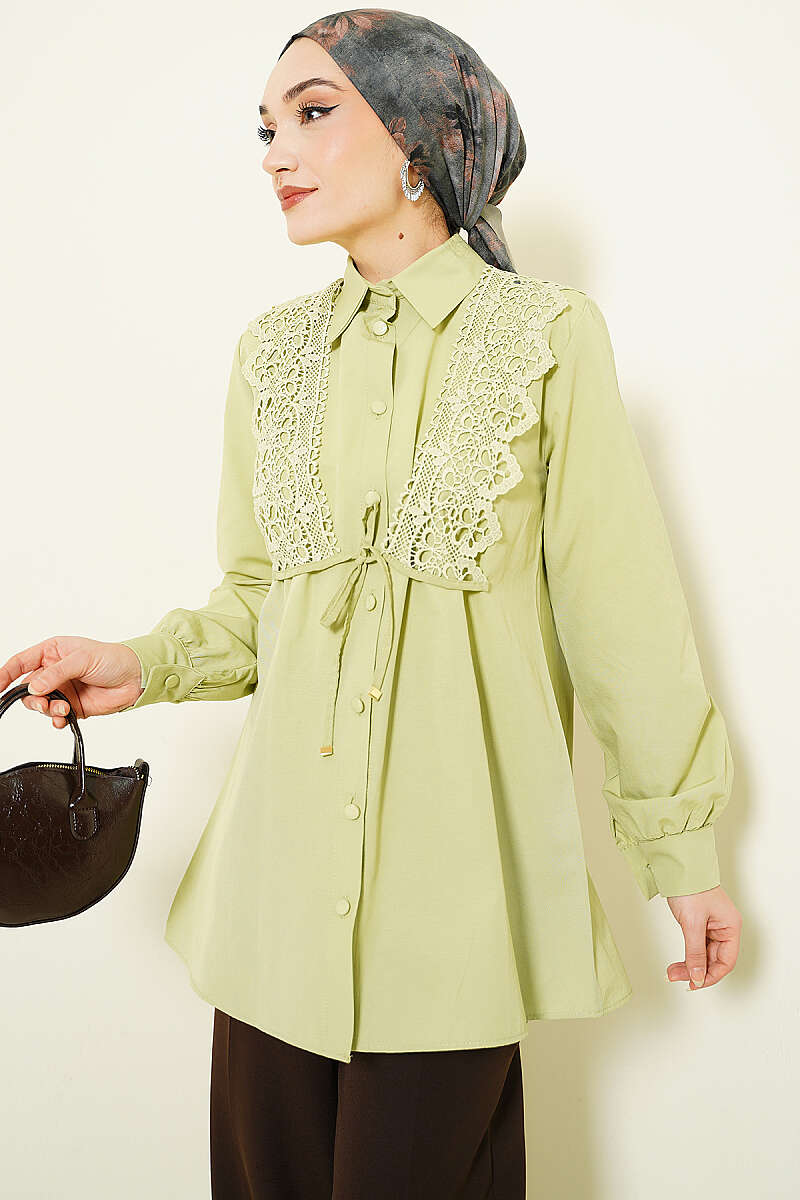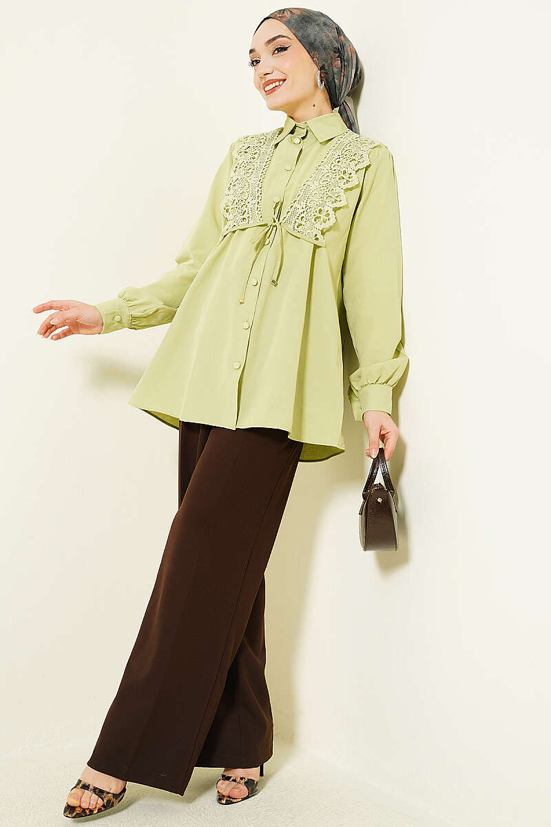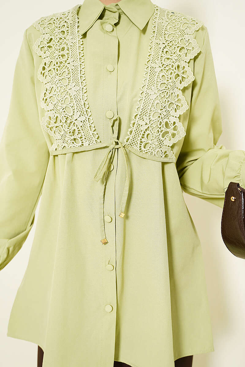 Güpürlü Bağcıklı Gömlek Fıstık Yeşili