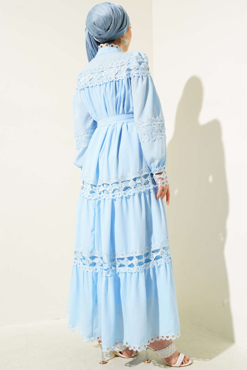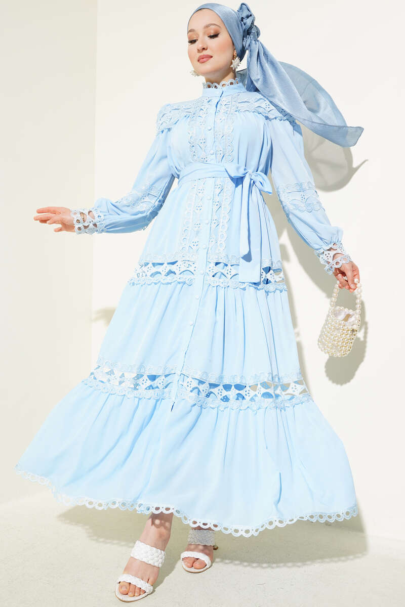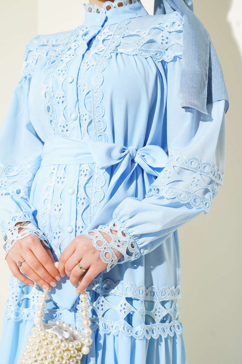 Çiçek Motifli Tül Pelerinli Abiye Elbise Bebe Mavi
