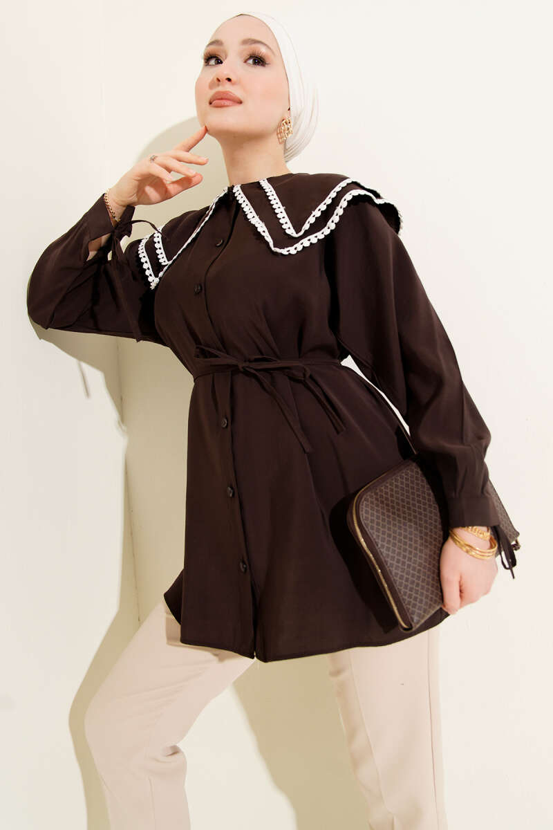 Güpürlü Çift Denizci Yaka Gömlek Nefti