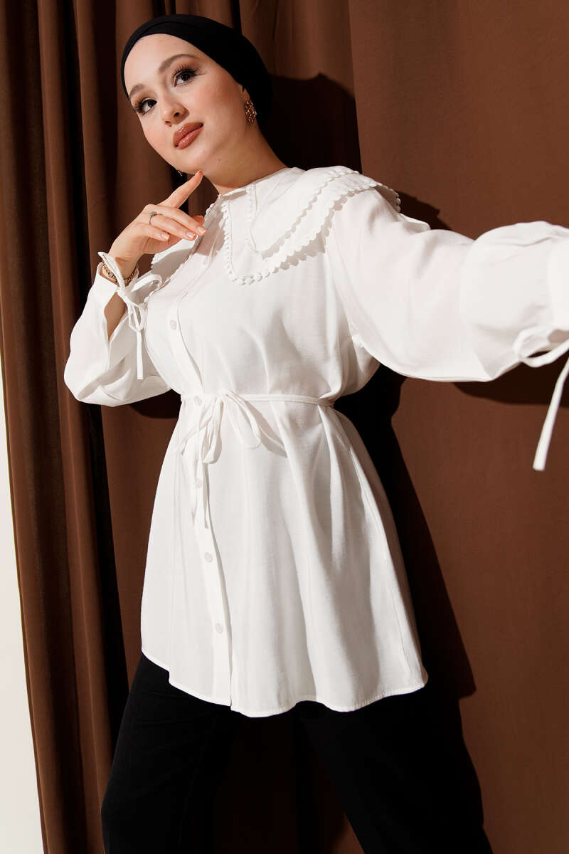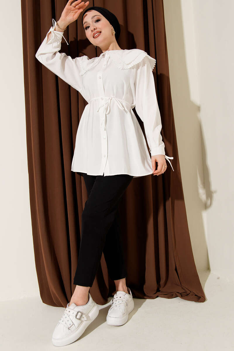 Güpürlü Çift Denizci Yaka Gömlek Nefti