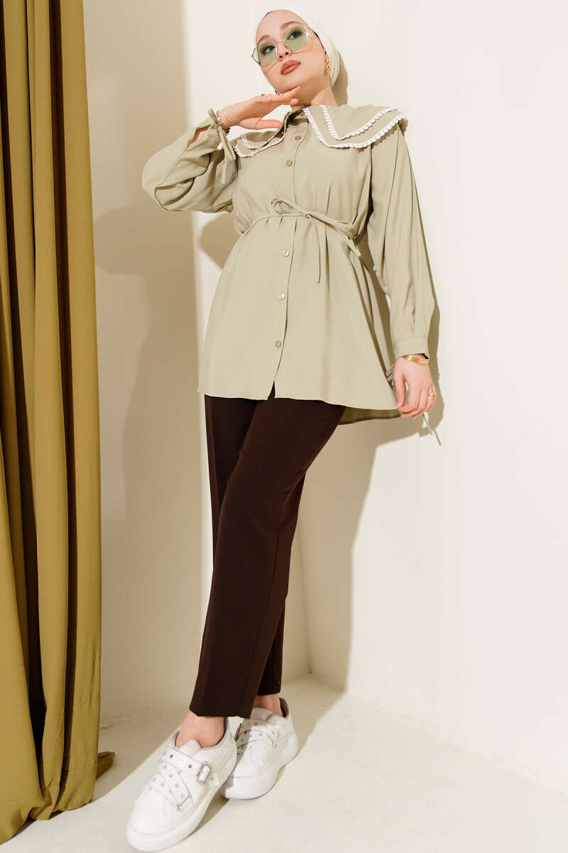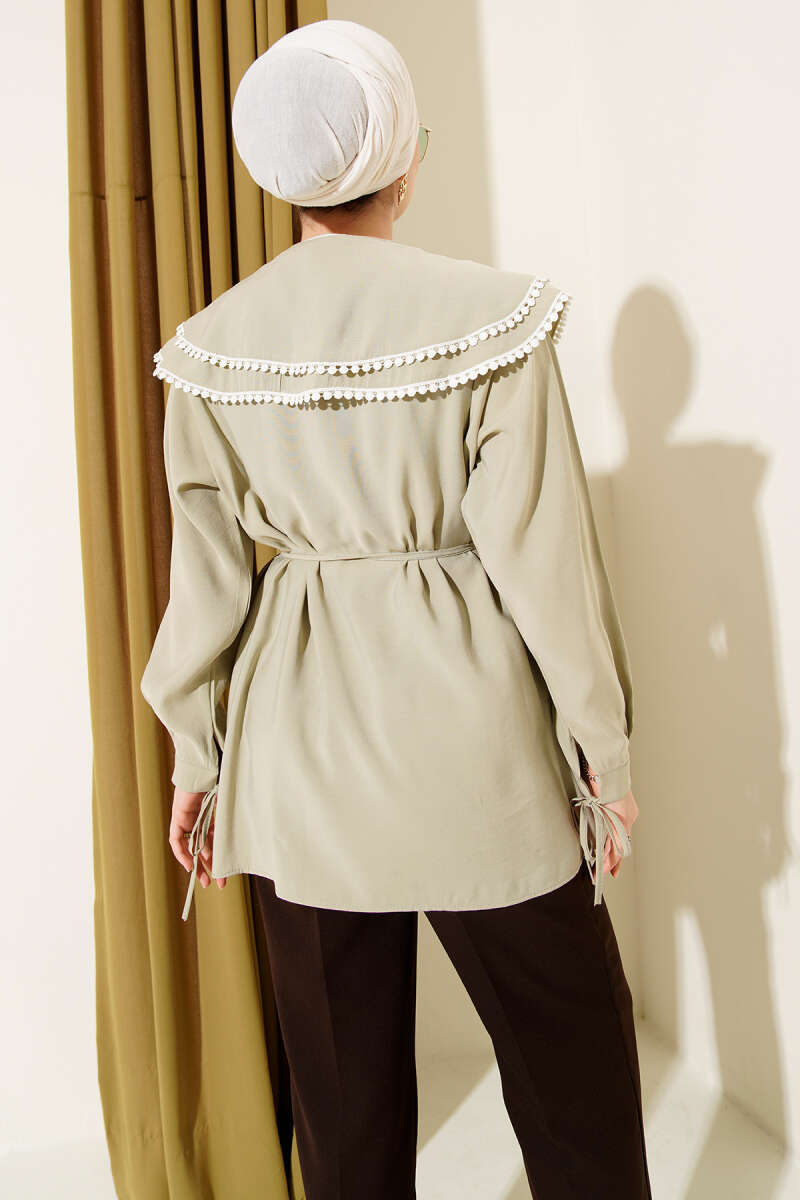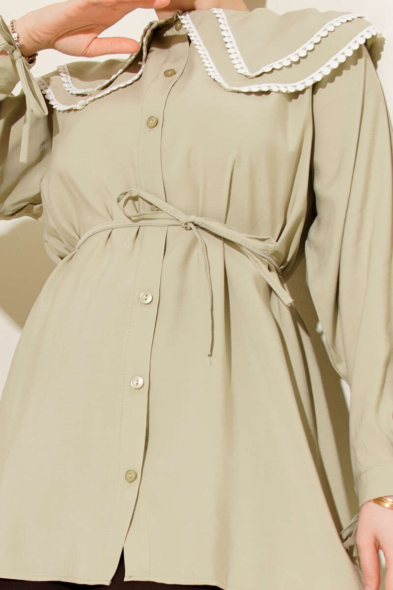 Güpürlü Çift Denizci Yaka Gömlek Ekru
