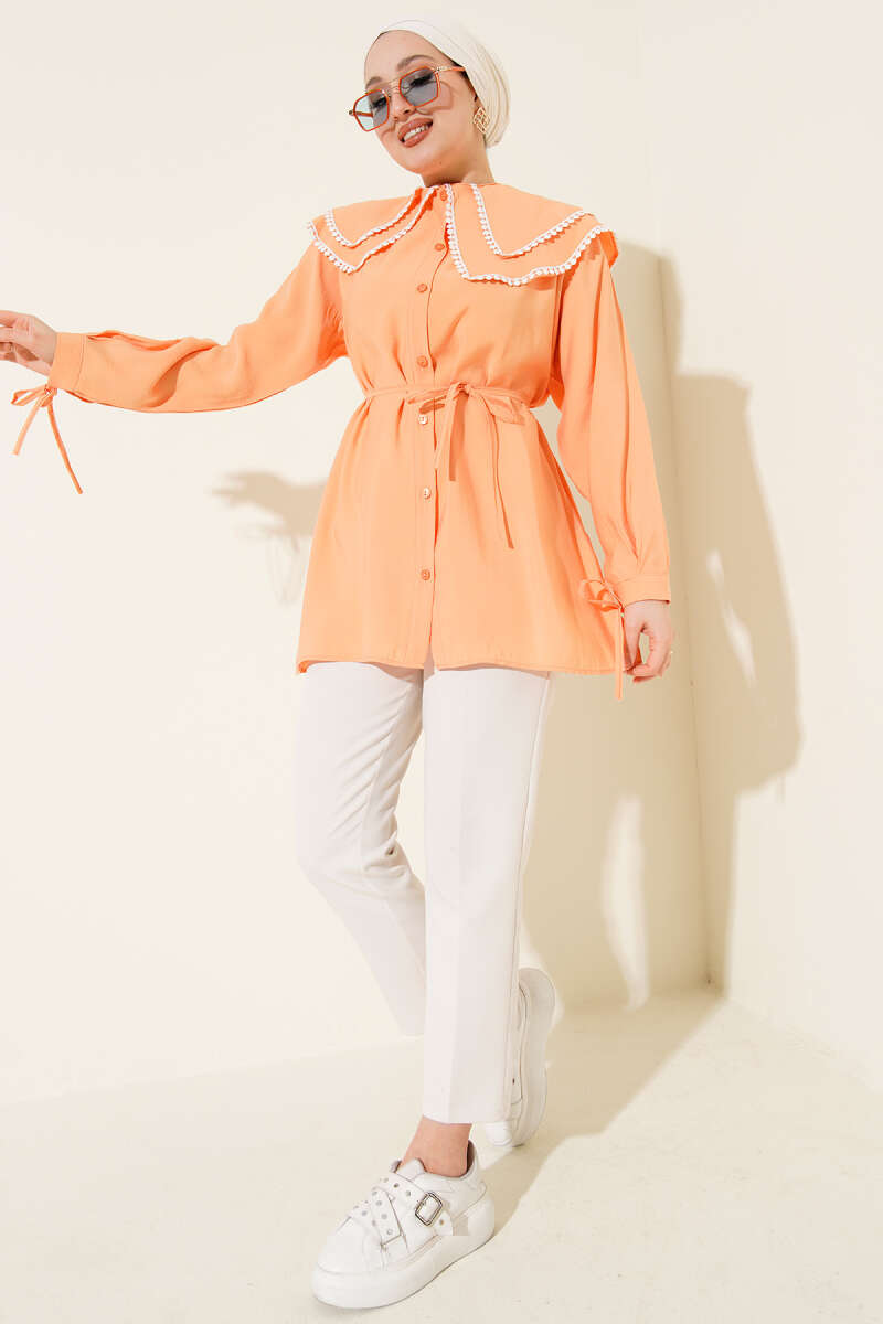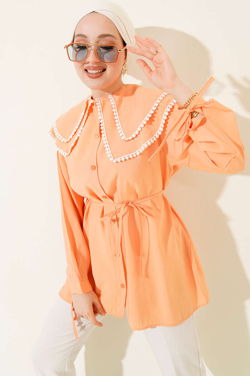 Güpürlü Çift Denizci Yaka Gömlek Nefti