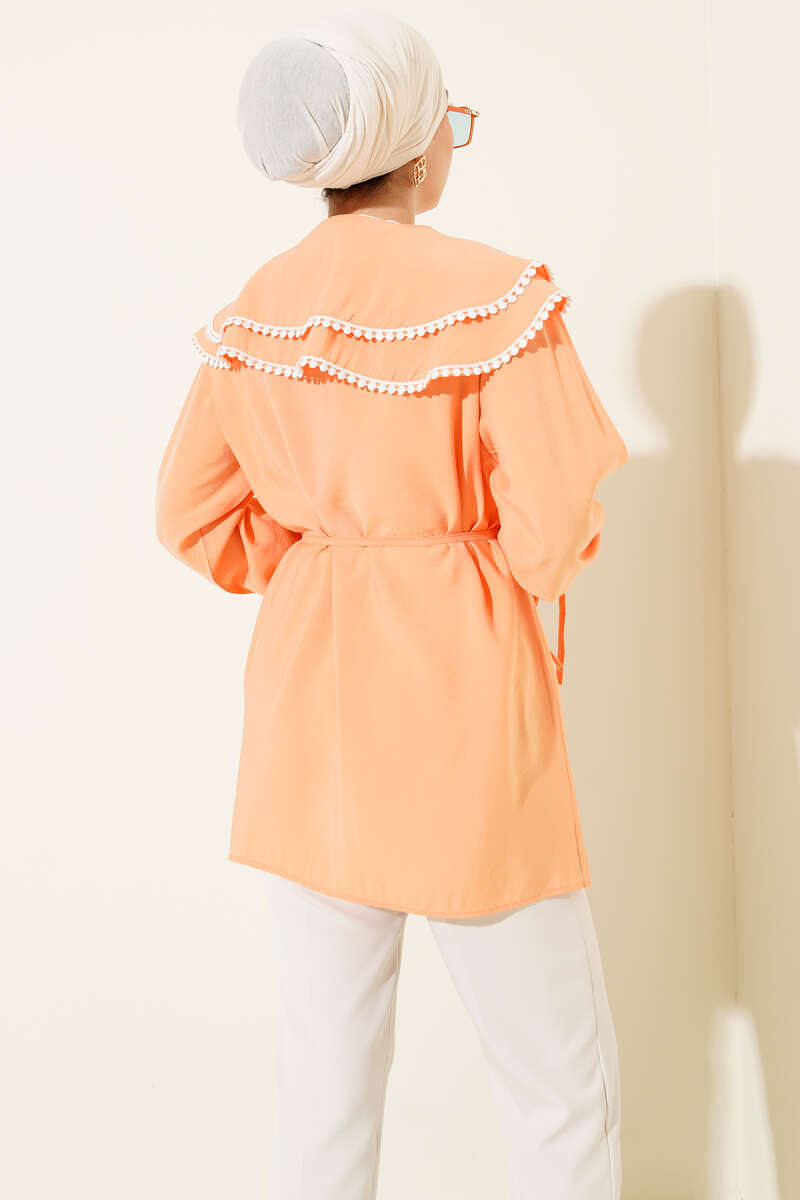 Fırfır Pelerinli İp Kuşaklı Gömlek Pembe