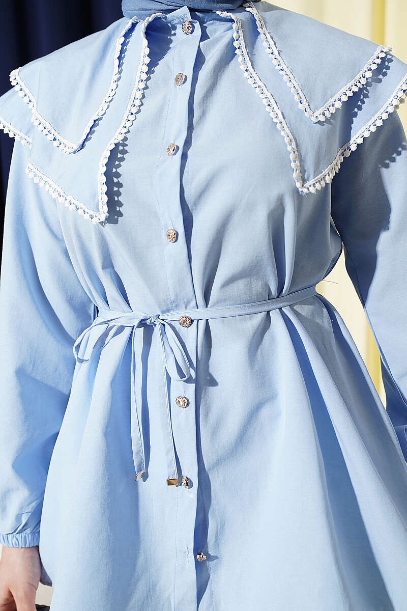 Güpürlü Çift Denizci Yakalı Gömlek Bebe Mavi