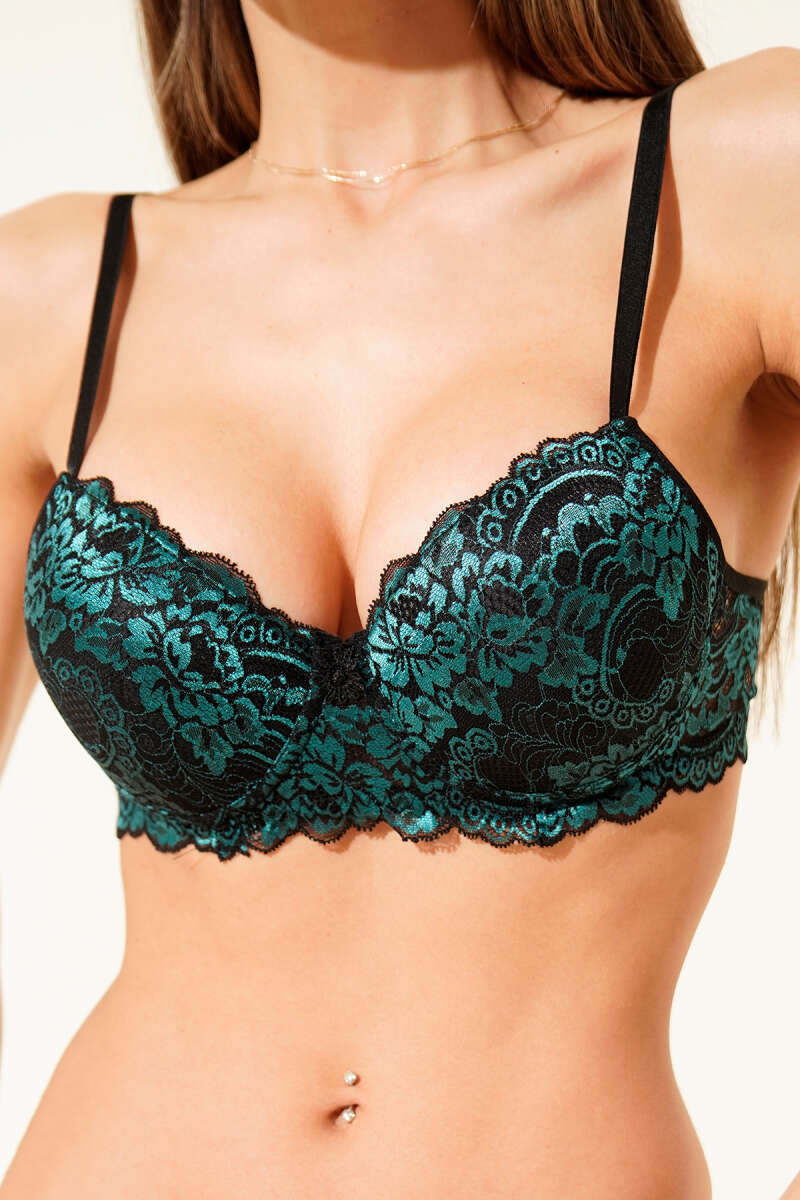 Güpürlü Destekli Sütyen Siyah Yeşil