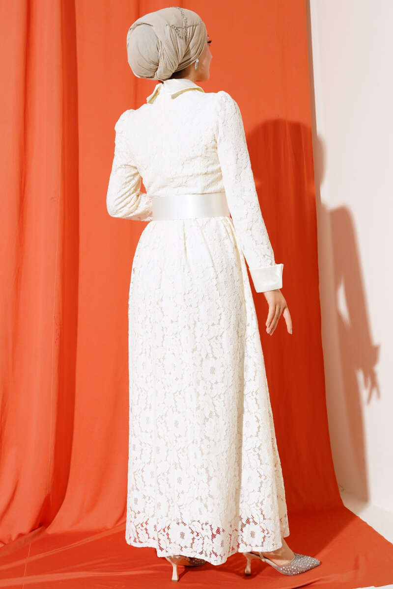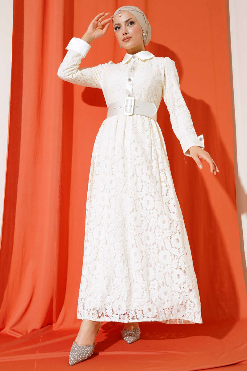 Boydan Düğmeli Yan Kemerli Tensel Elbise Taş