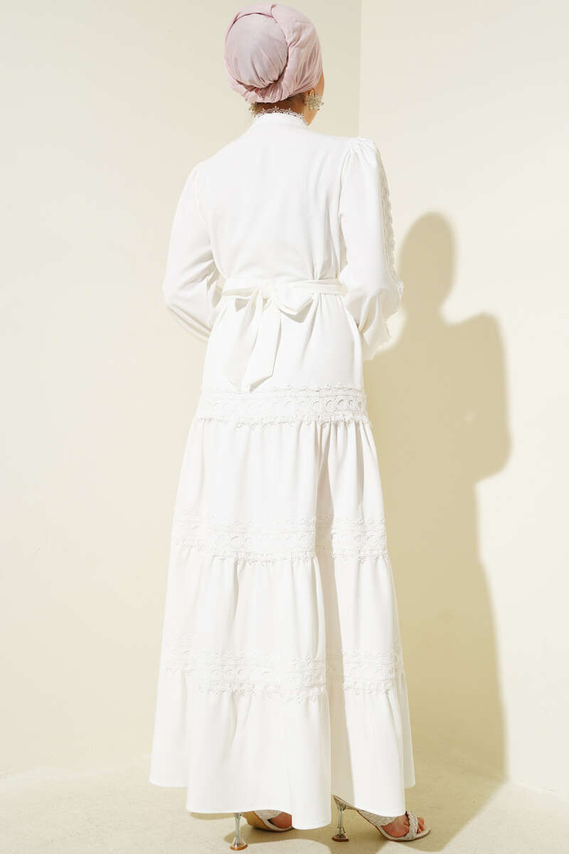 Pelerin Detaylı Pileli Triko Elbise Ekru