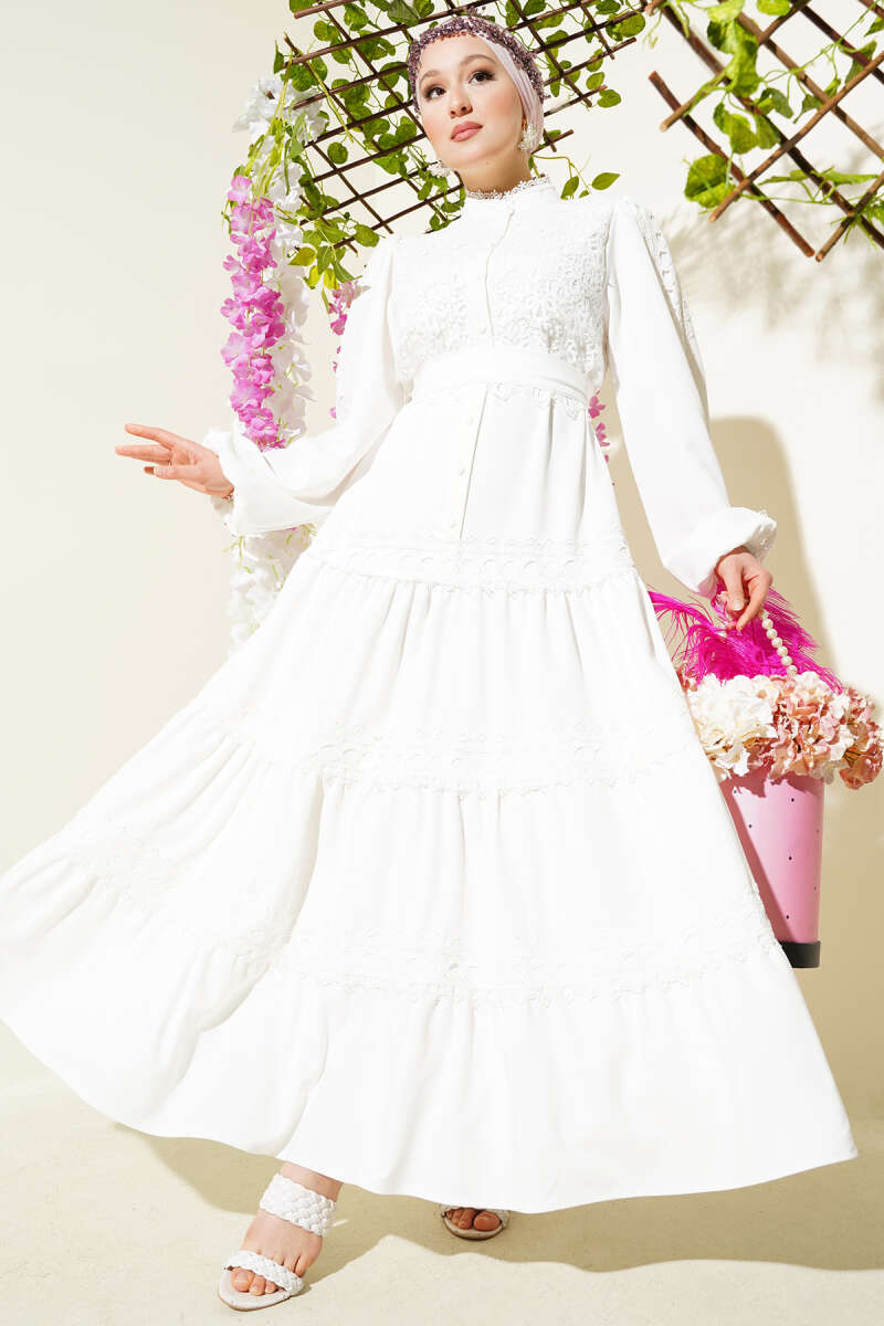 Omuz Fırfırlı Kat Kat Elbise Latte