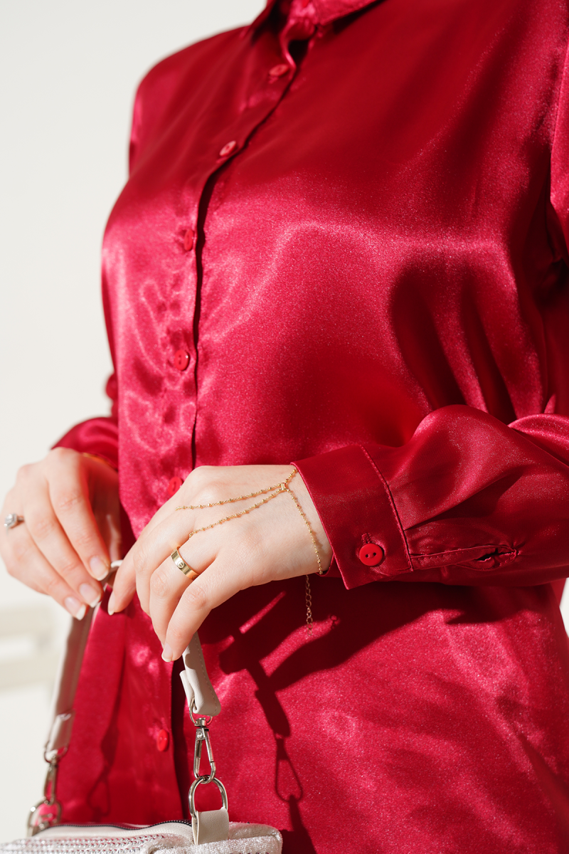 Yeni sezon saten gömlek hafif dökümlüdür. Etek uçları oval kesime sahip gömleğimizin kol uçları manşet detaylıdır. Birbirinden güzel ve canlı renkleriyle beğenileri toplayan saten gömleğimiz kombinlerinize şık bir dokunuş yapacaktır.