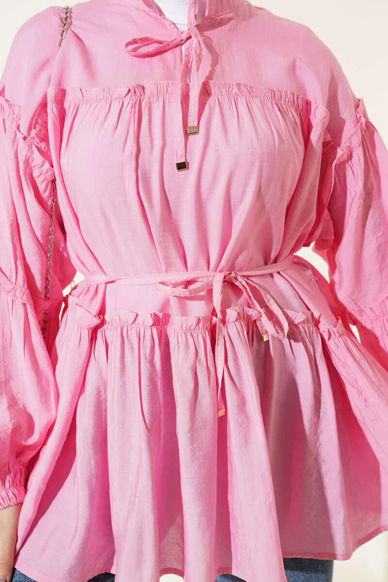 Hakim Yaka Bel İpli Tunik Çağla Yeşili