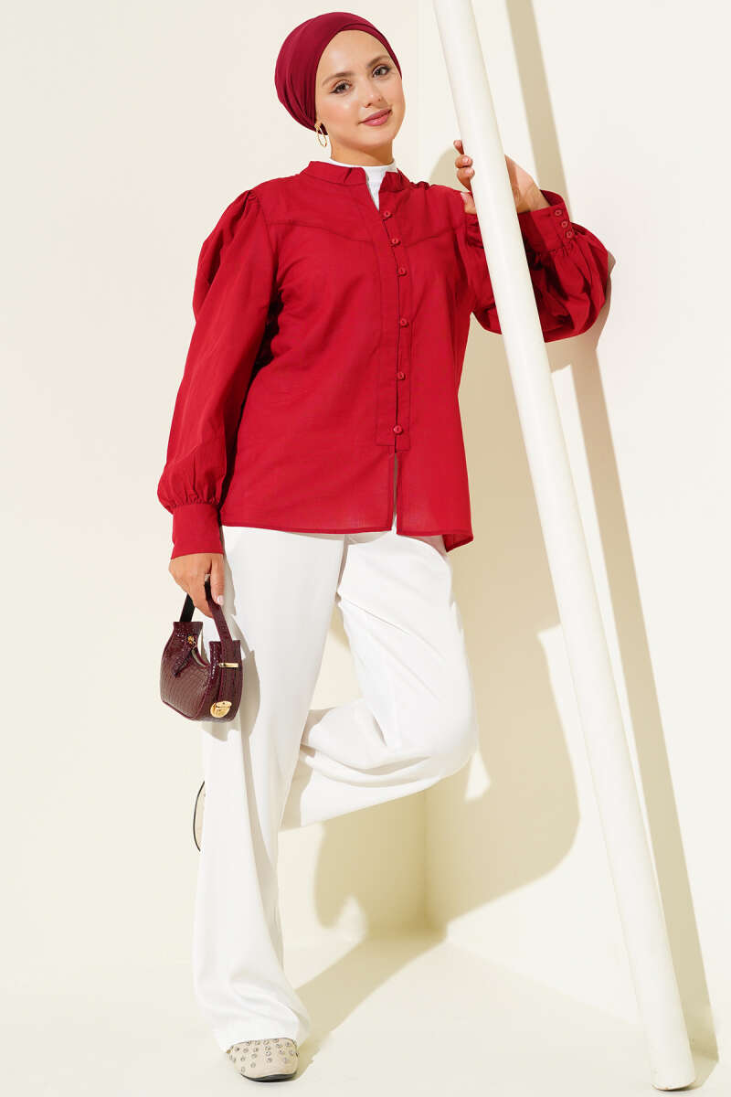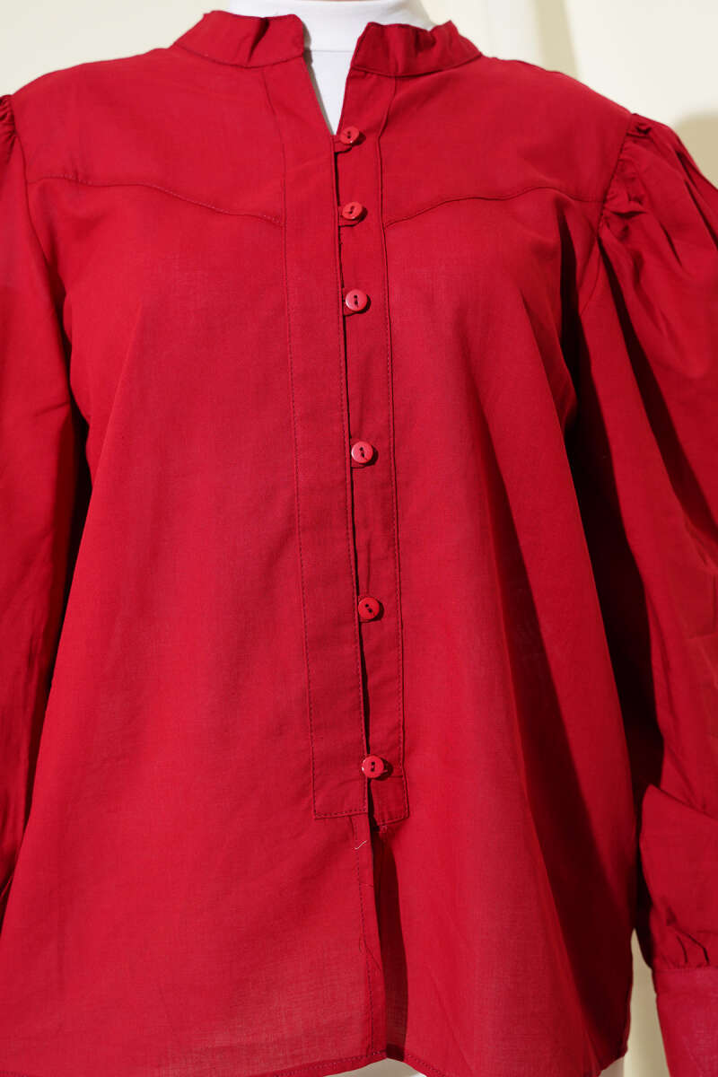 Brit Düğmeli Pileli Tensel Gömlek Lacivert