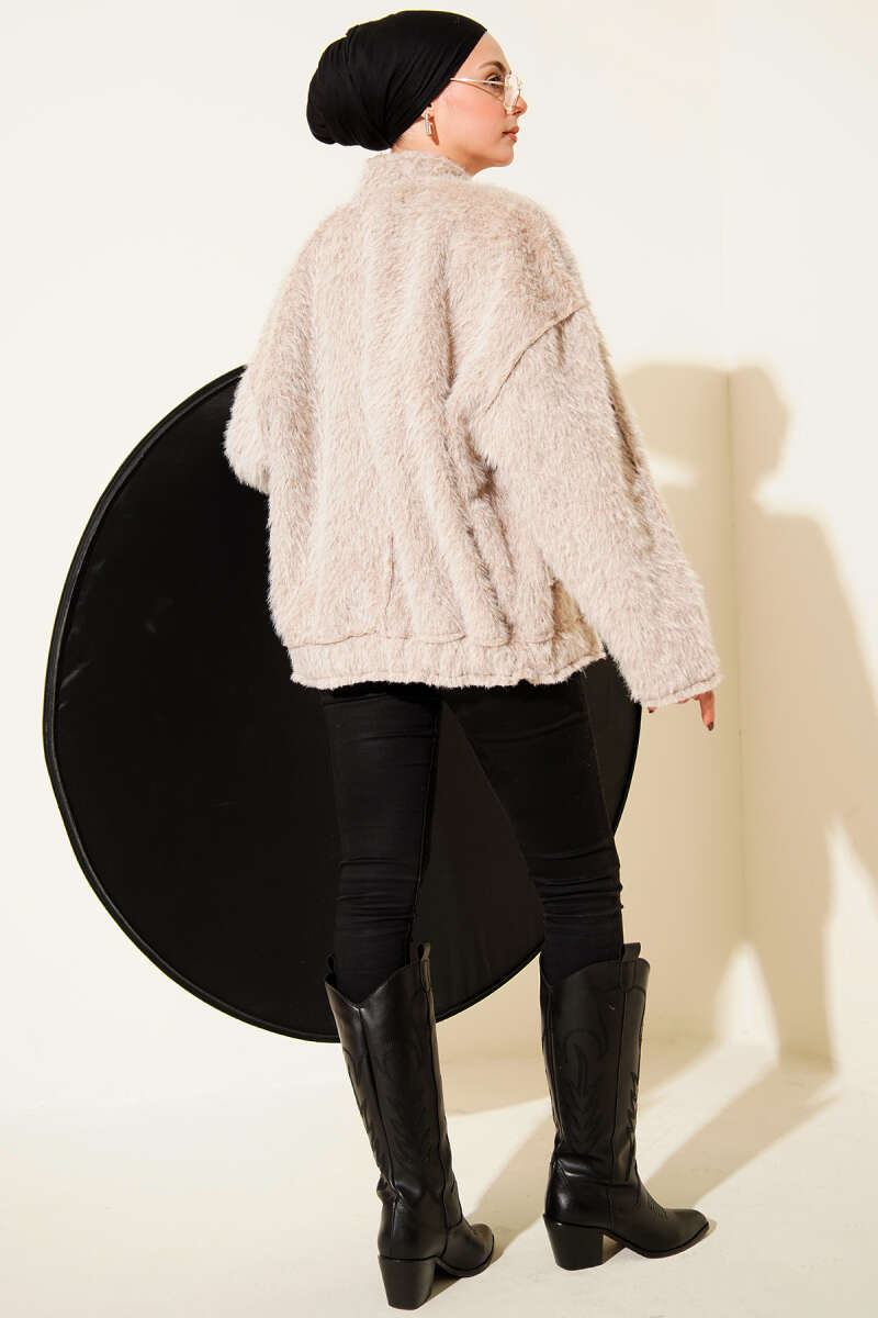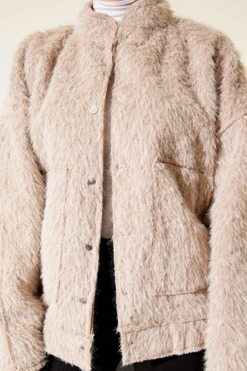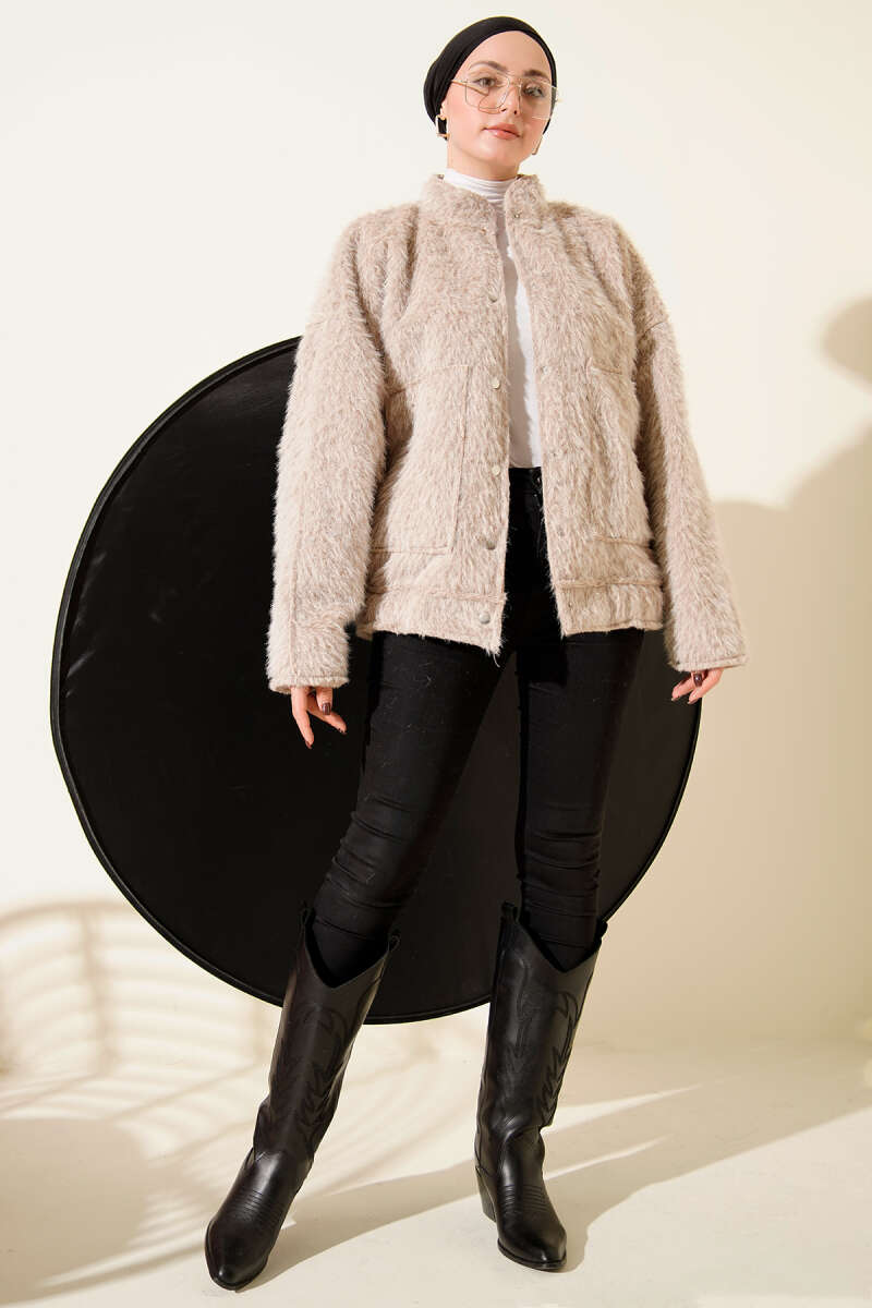 Kot Garnili Çıtçıtlı Peluş Ceket Ekru