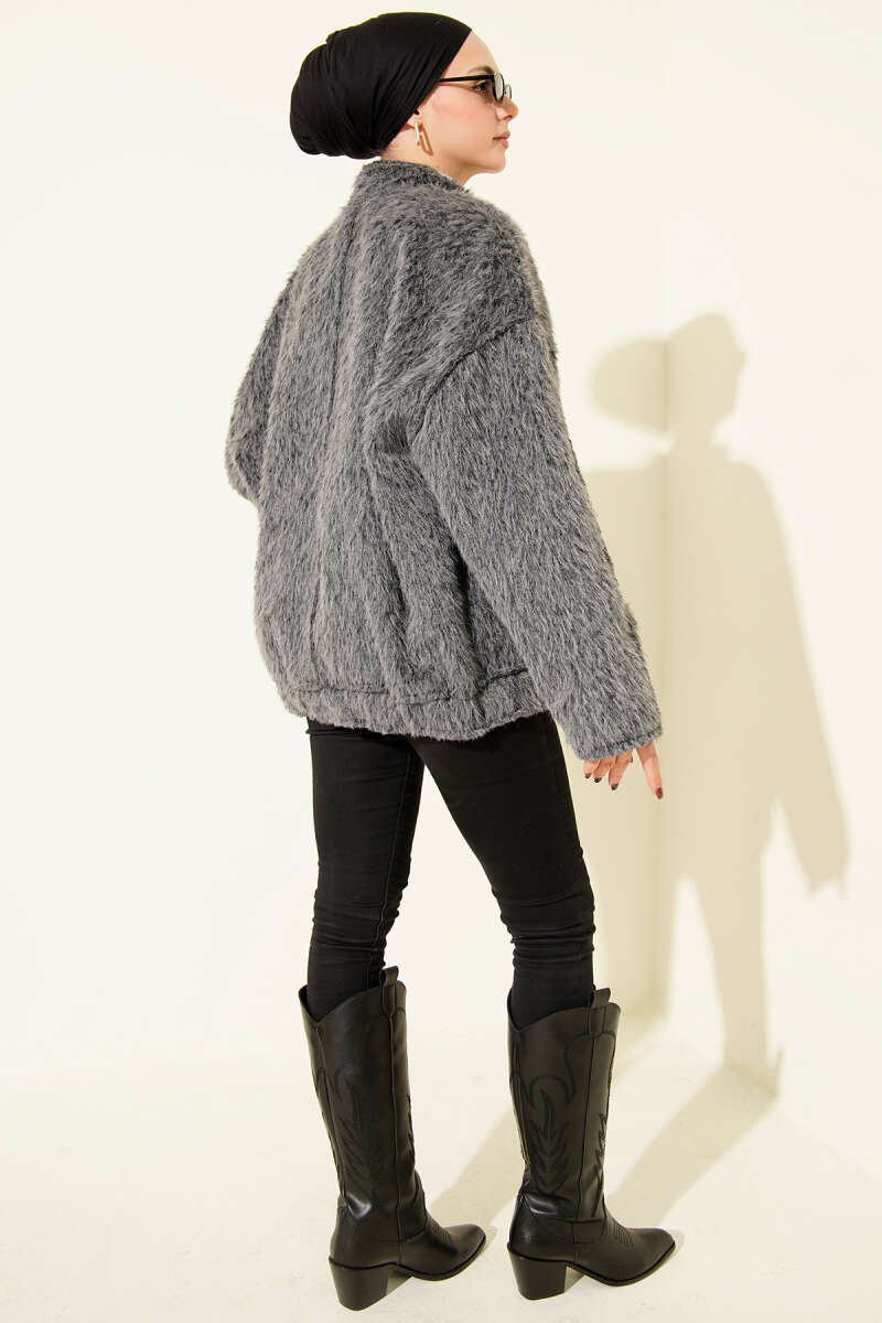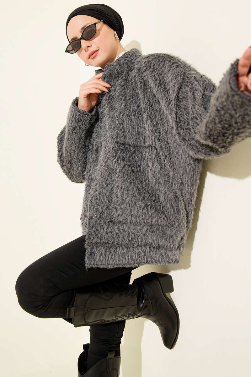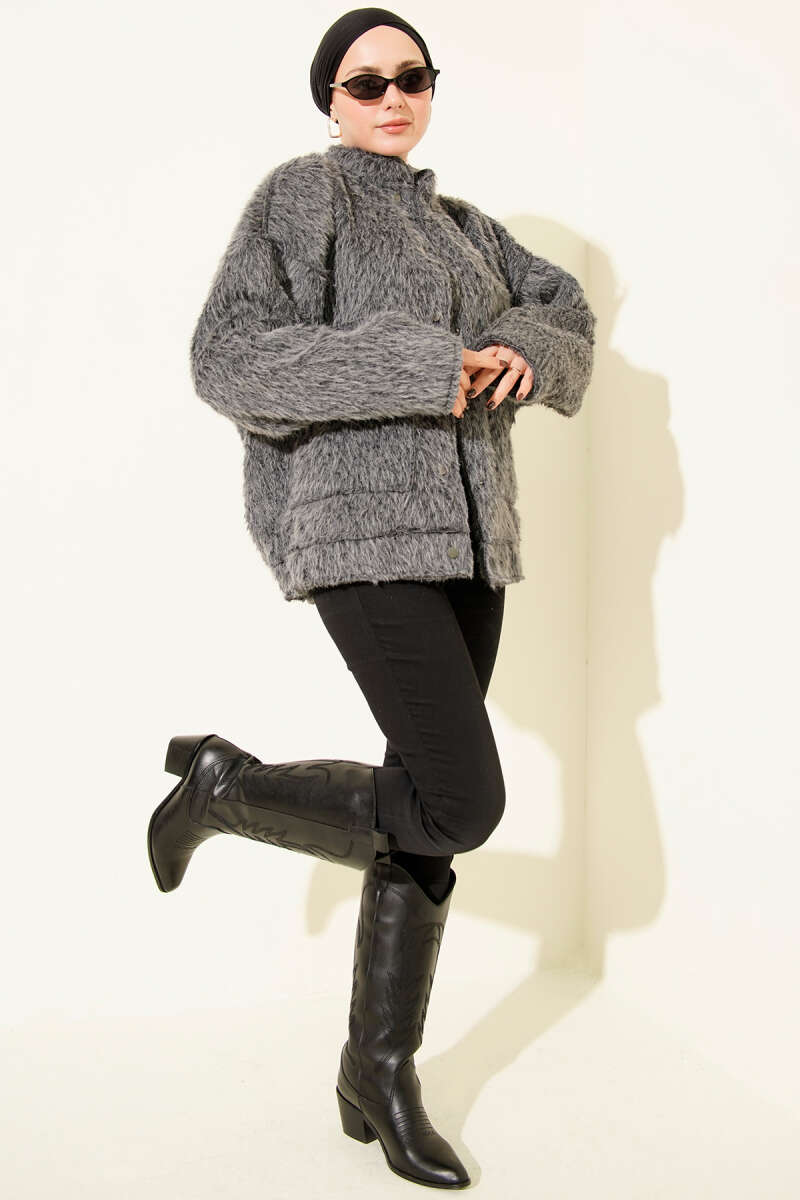 Kot Garnili Çıtçıtlı Peluş Ceket Kahve