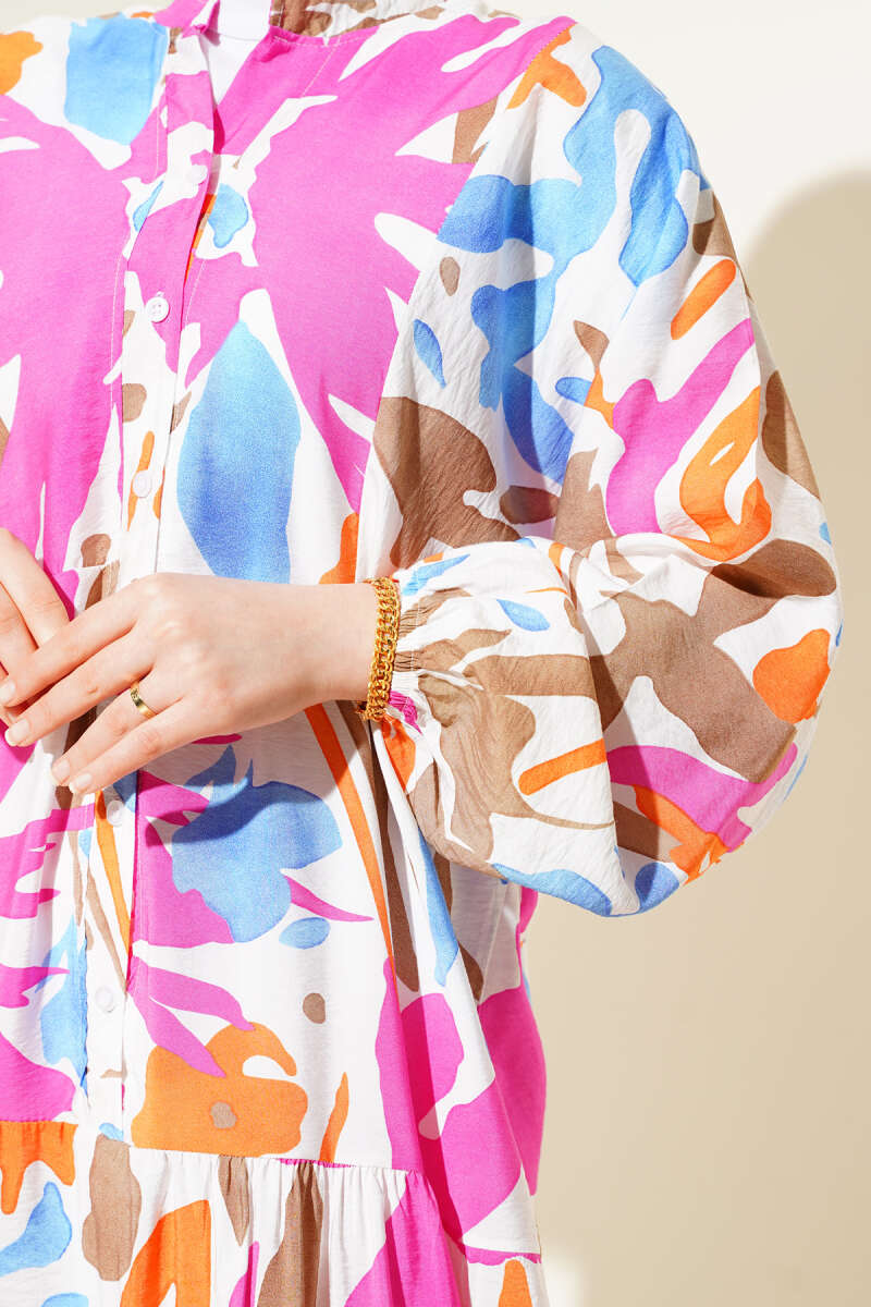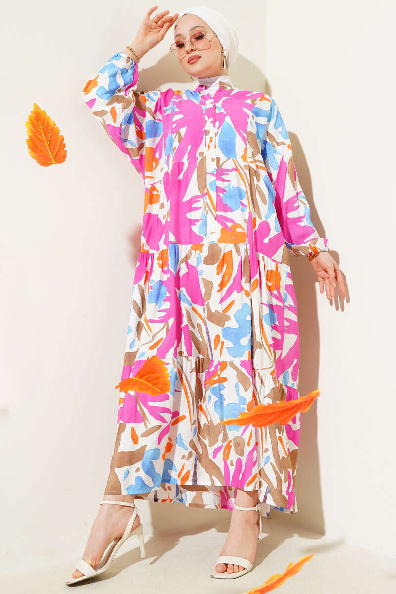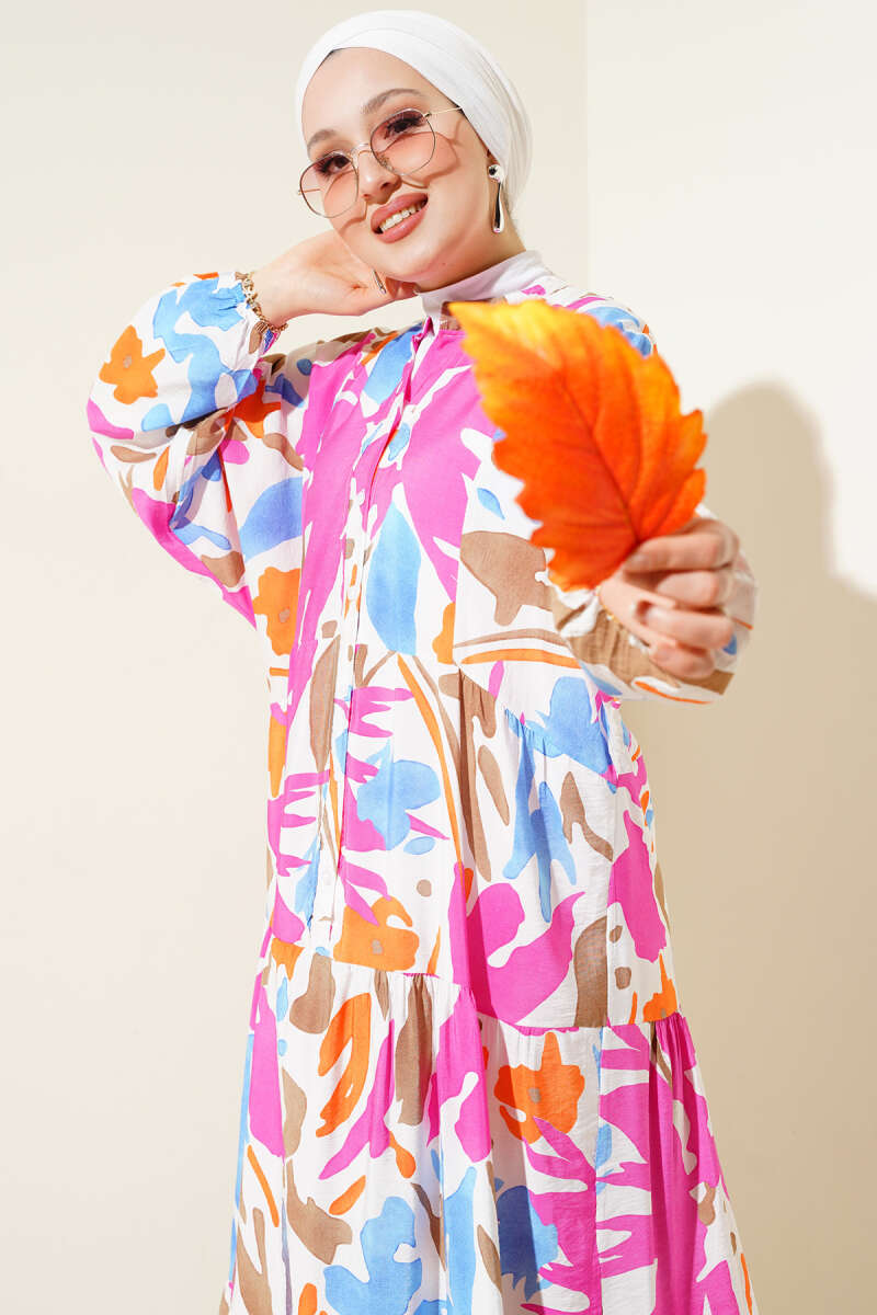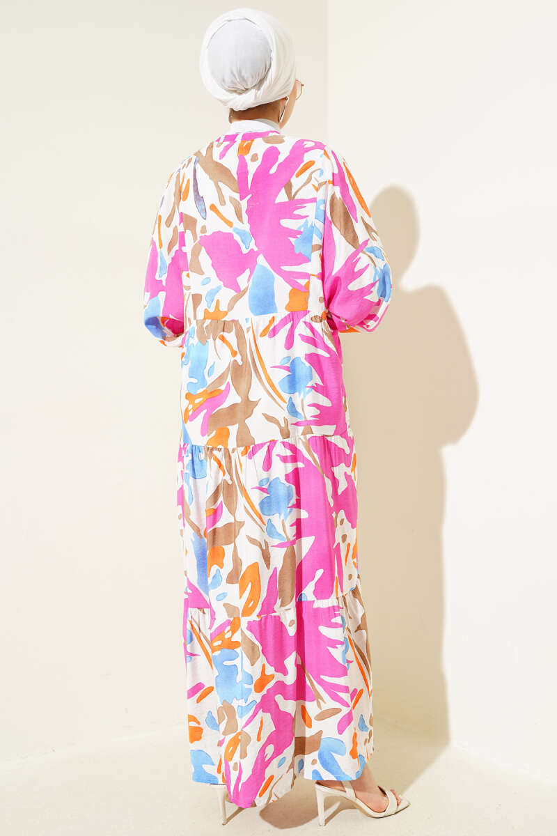 Duble Kol İp Bağcıklı Elbise Mürdüm