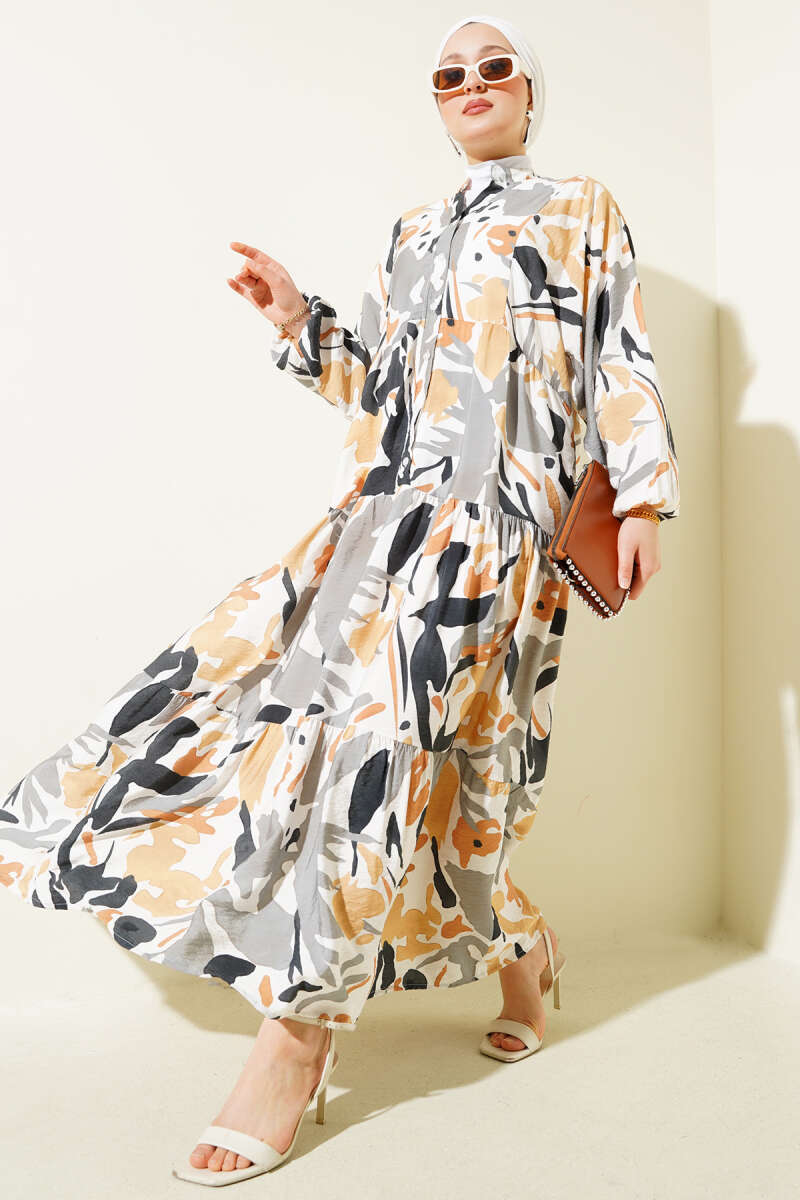 Elbise resimlerde göründüğünden çok daha güzel ve tok bir kumaşı var. Tam kalıp ben biraz bol olsun diye bir beden büyük aldım.