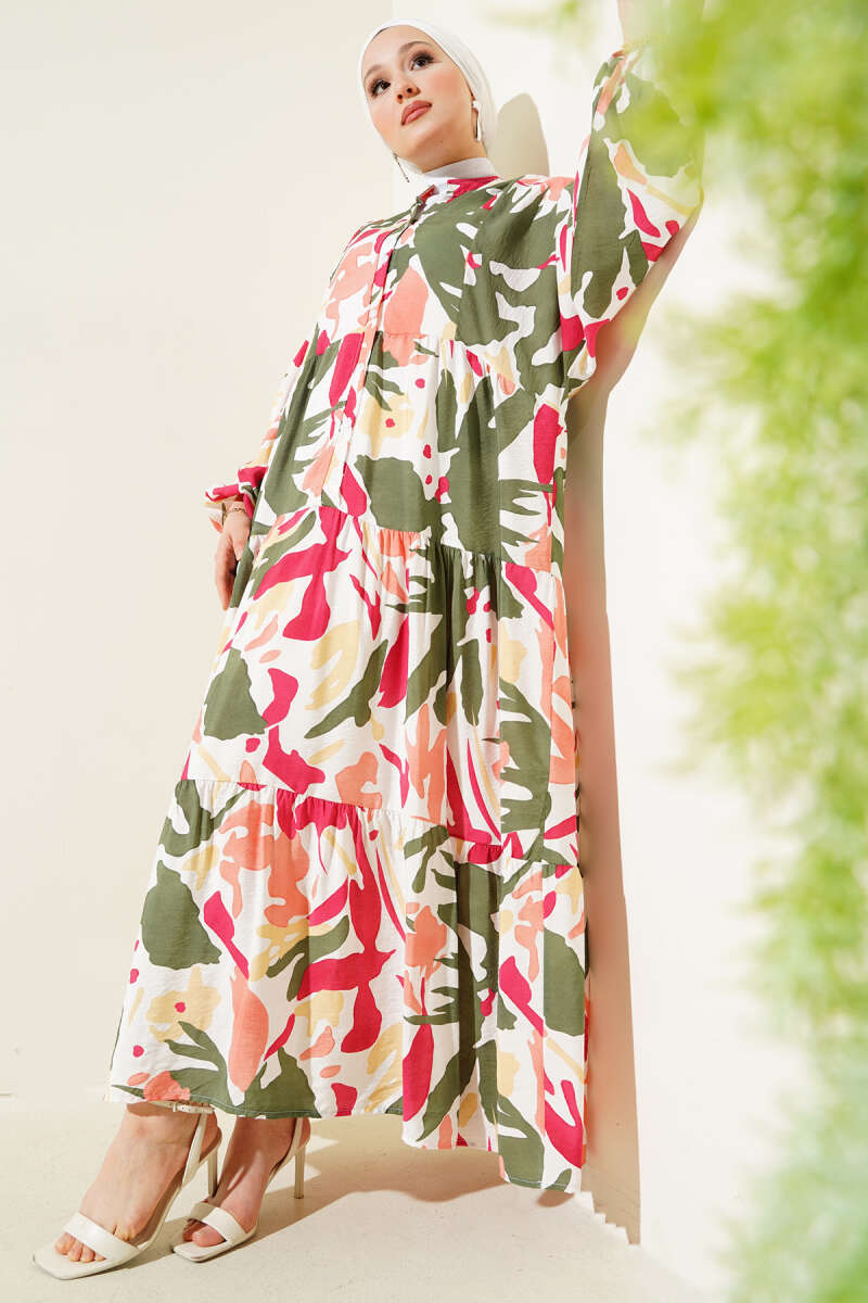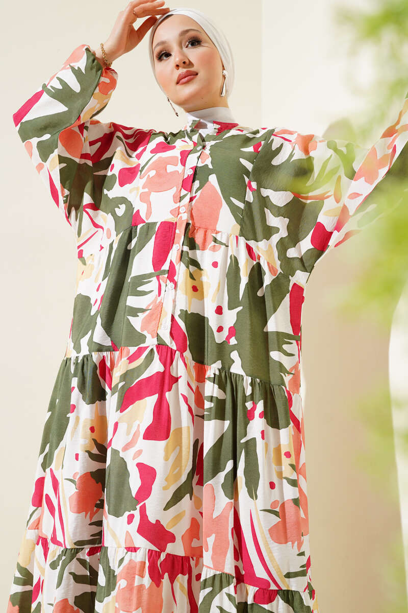 Duble Kol İp Bağcıklı Elbise Haki
