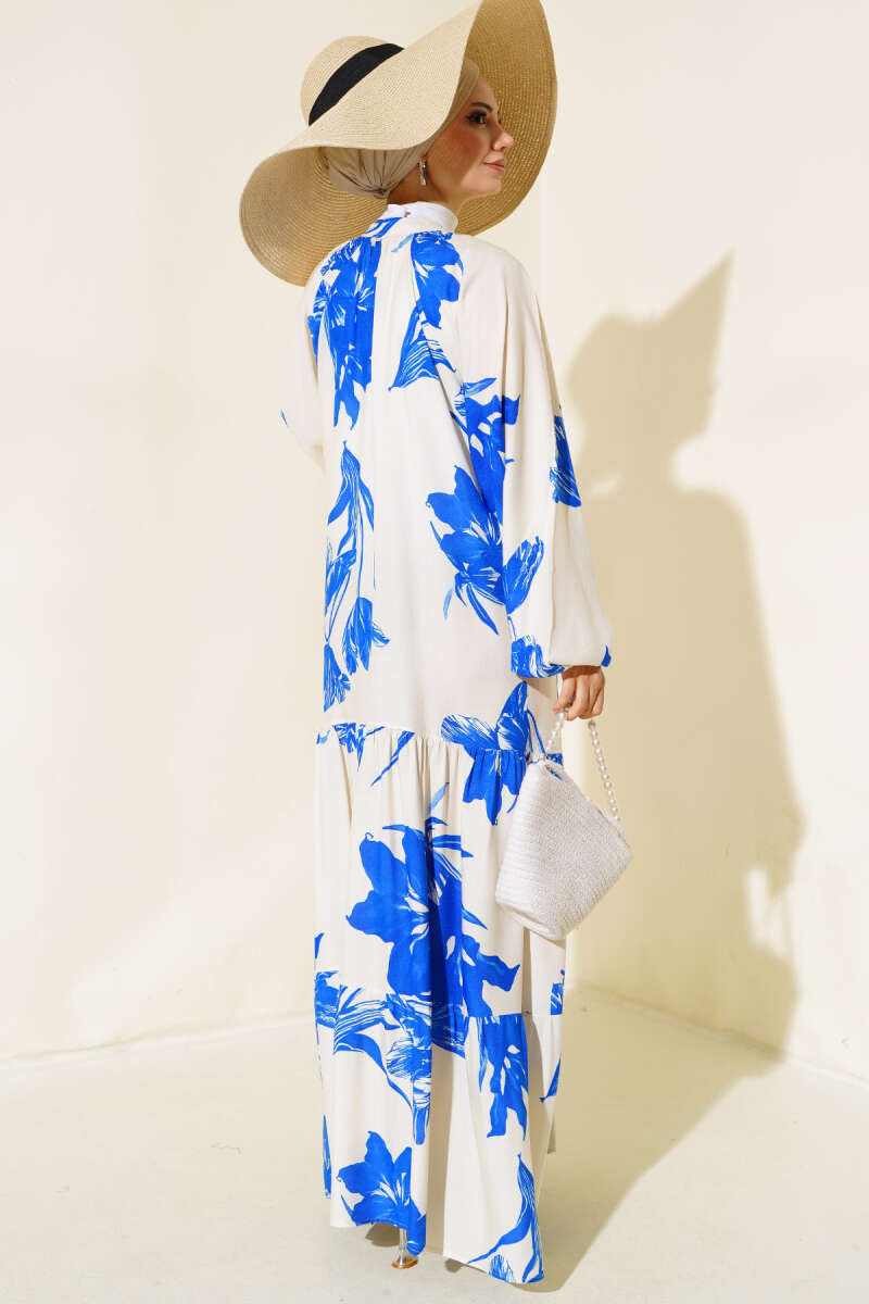 Metal Düğme Süslemeli Bağcıklı Elbise Vizon