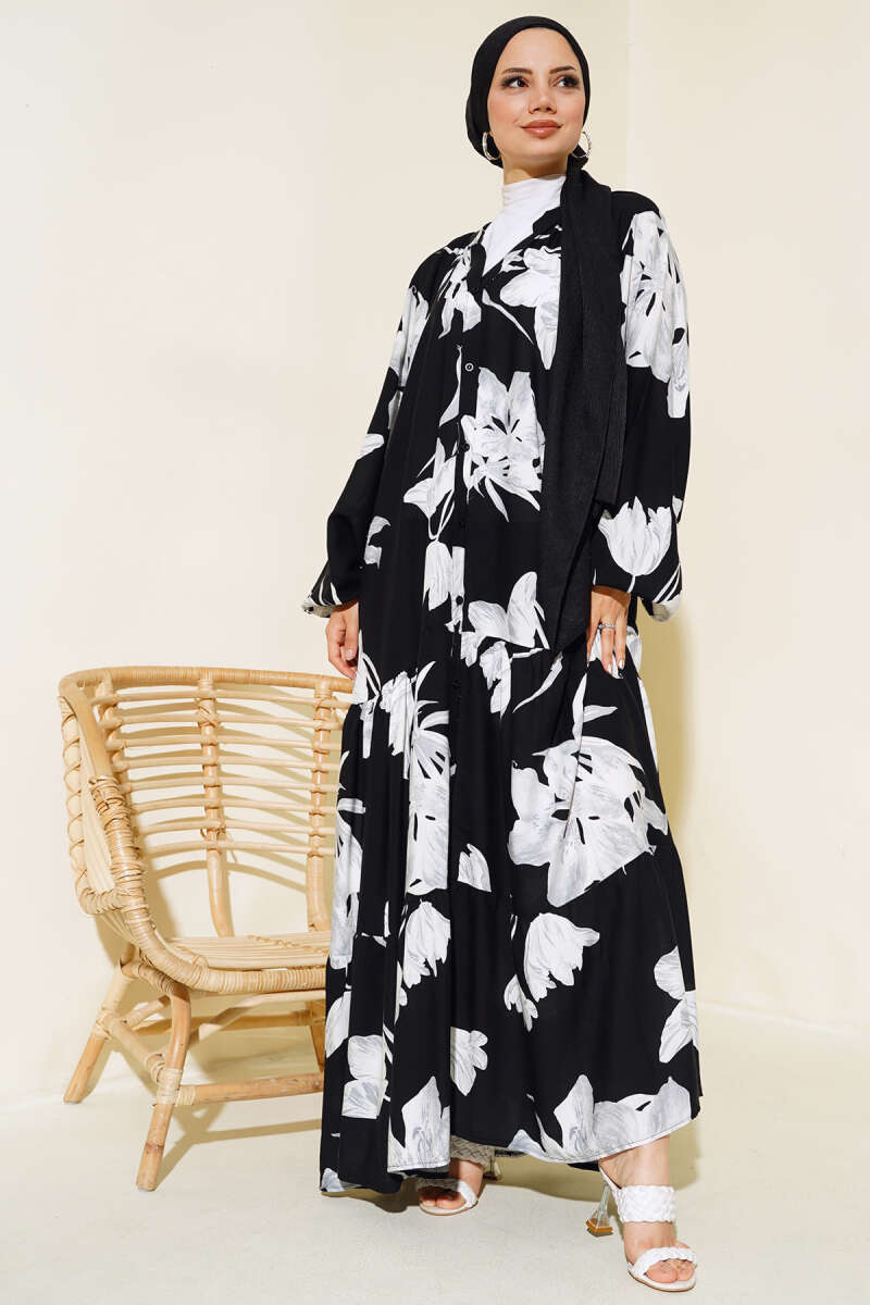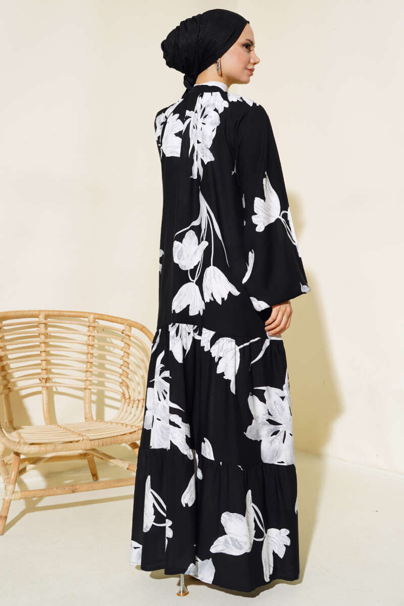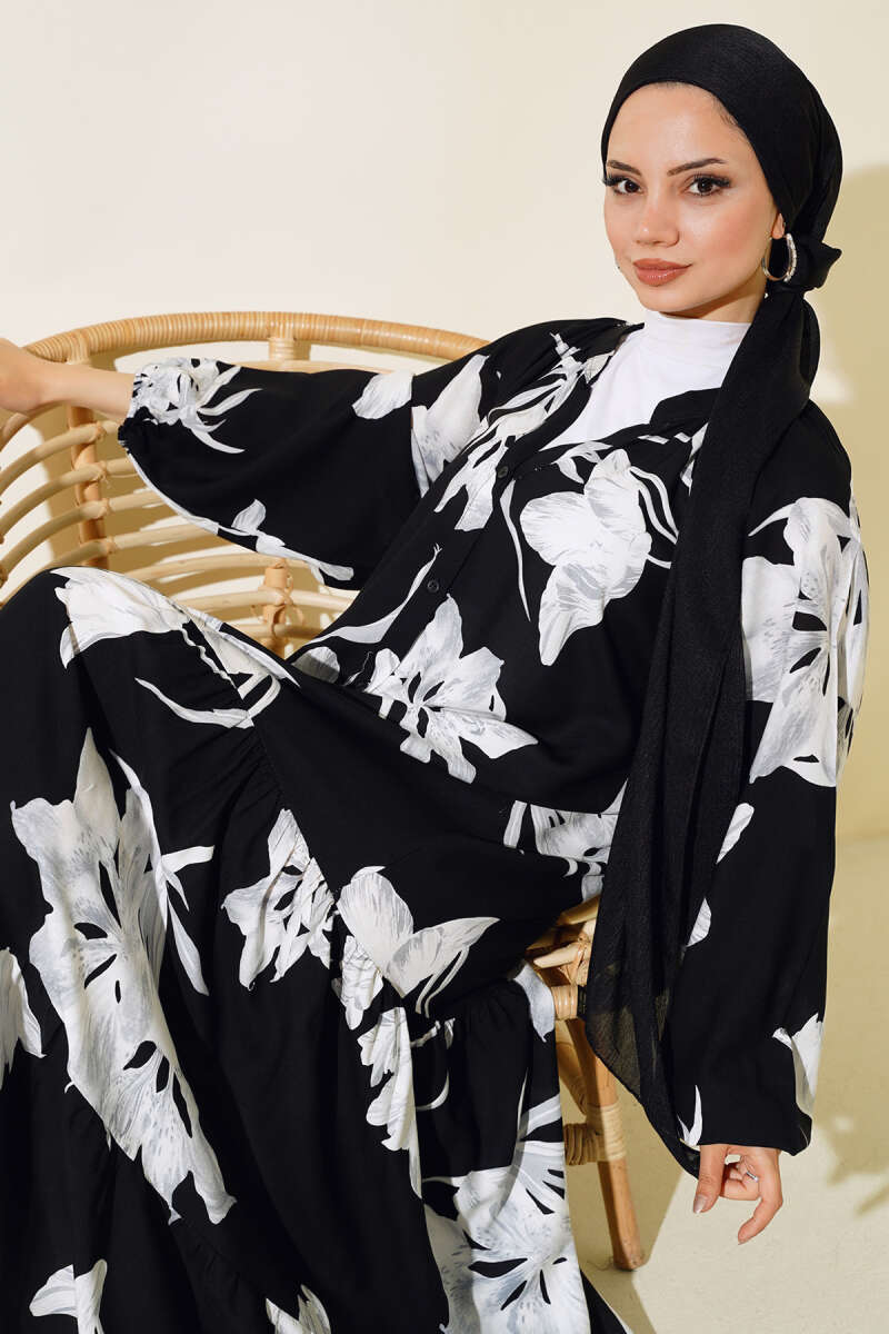 Bel Taşlı Pelerinli Abiye Elbise Siyah