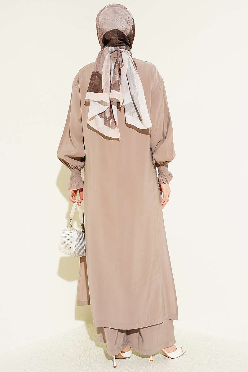 Fırfırlı İp Bağcıklı Şifon İkili Takım Kahve