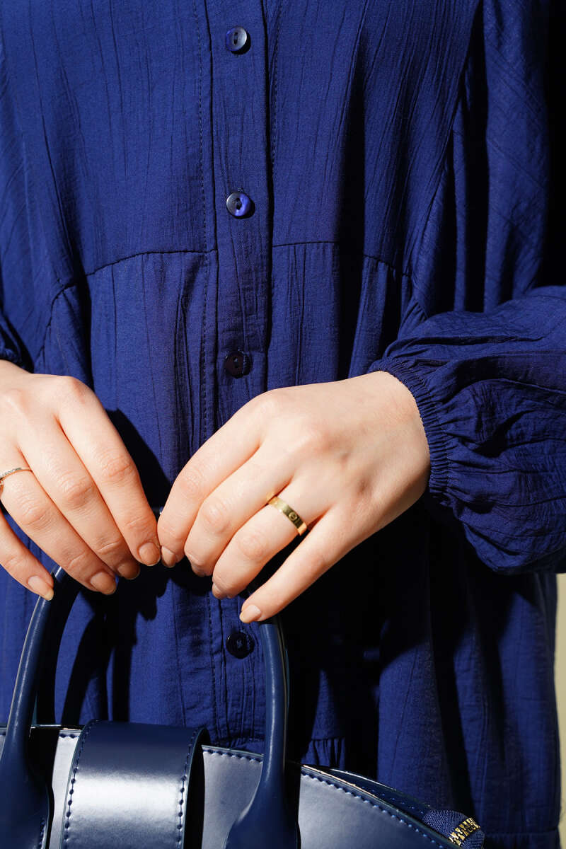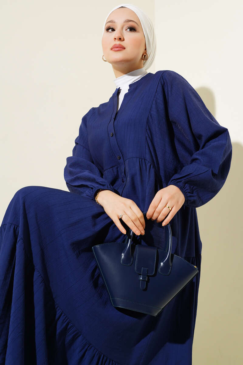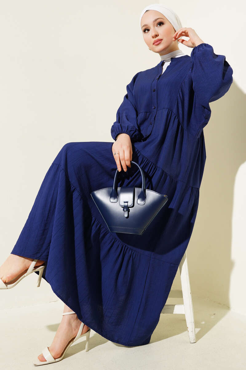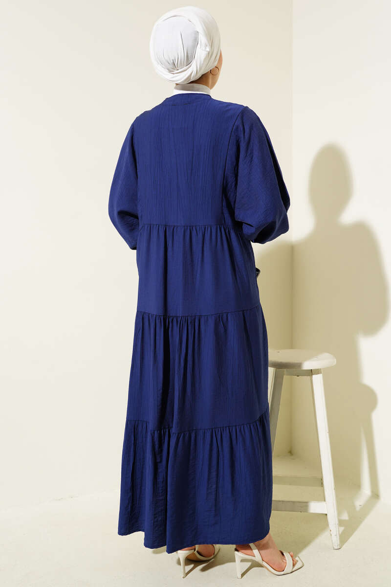 Hakim Yaka Düğmeli Kat Kat Elbise Siyah