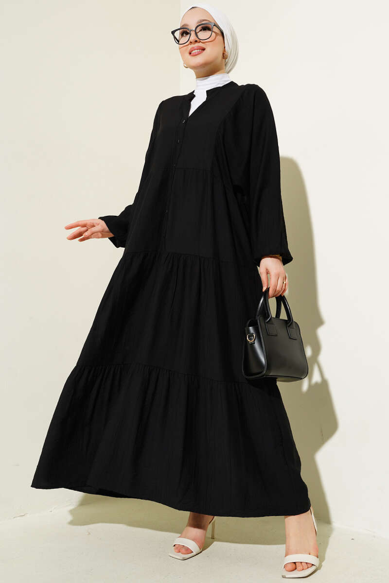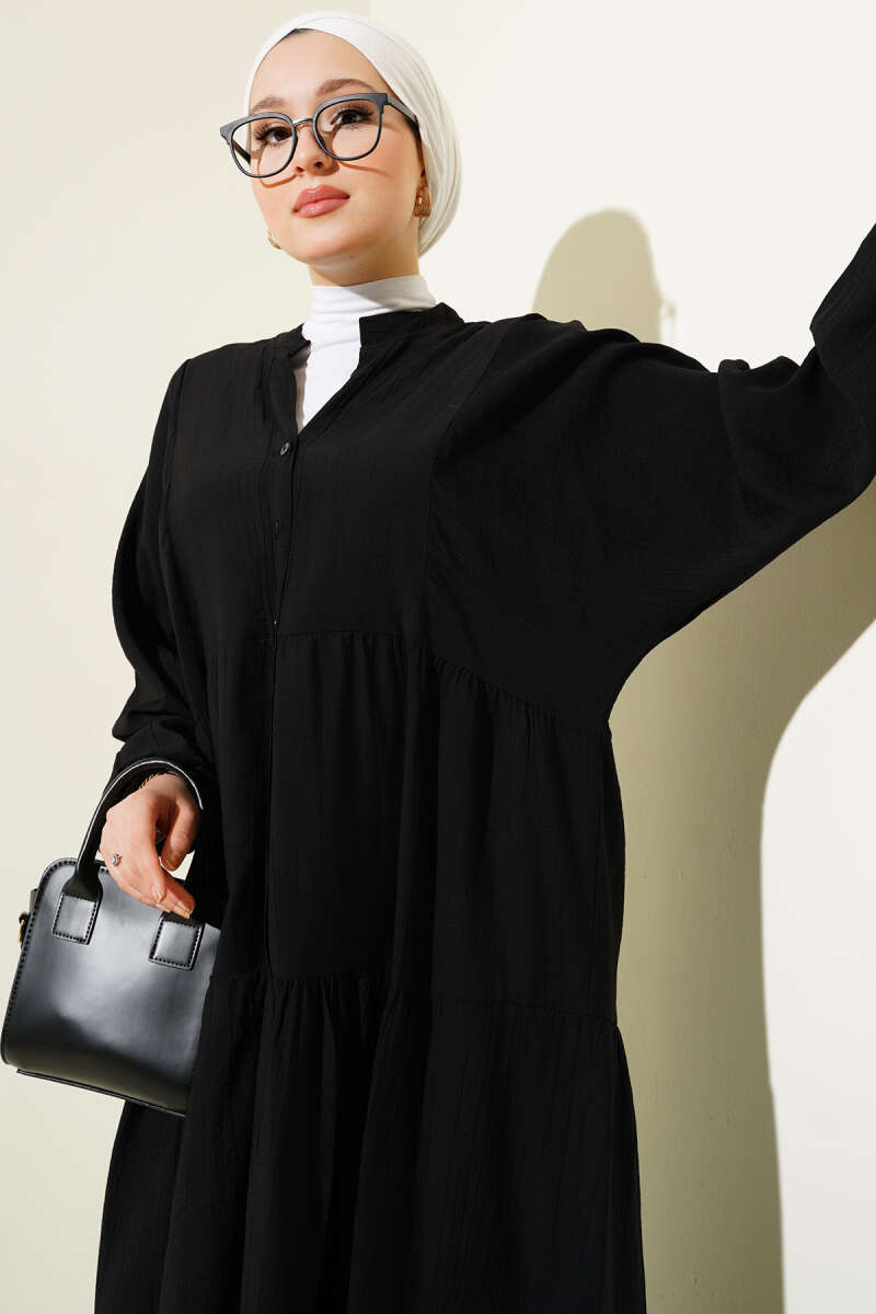 Gömlek Yaka Düğmeli Triko Elbise Siyah