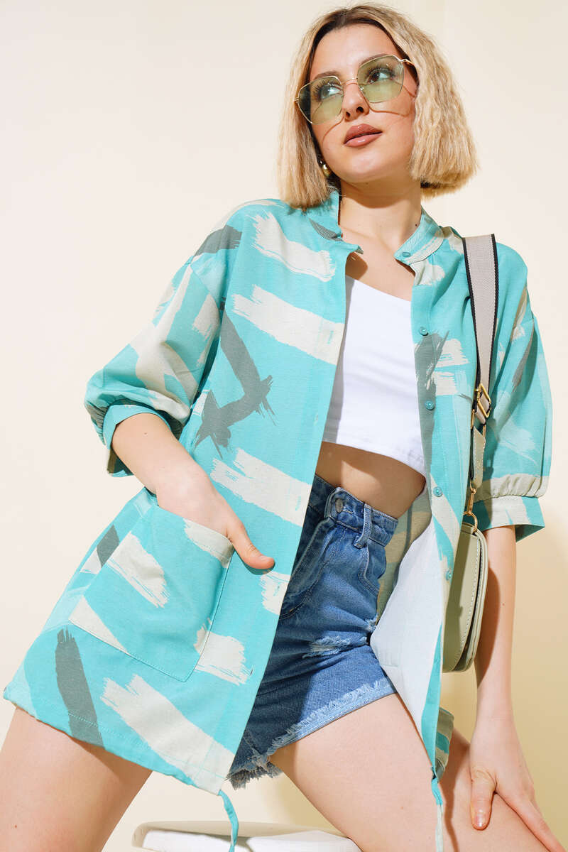 Yeni sezon gömlek modelimiz sizlerle beraber. Gömleğimiz fırça desenlidir. Kısa koldur. Hakim yakadır. Gömleğimizin iki adet cebi vardır. Etek ucu tünelli olup ip bağcıklıdır. Renk seçenekleri mevcuttur.