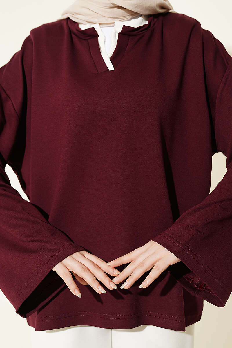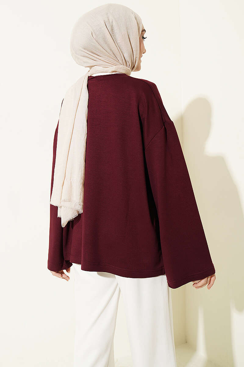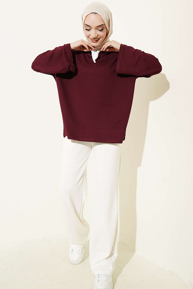 Bu tunik, hakim yaka tasarımı ve minimalist çizgileriyle modern tesettür giyimin en konforlu parçalarından biri olarak öne çıkar. Düşük omuz yapısı ve dökümlü kesimi sayesinde gün boyu hareket özgürlüğü sunarken, sade dokusuyla zahmetsiz bir şıklık vadeder. Boyun kısmındaki zarif dekolte detayı, klasik tunik formuna yenilikçi bir dokunuş katarak hem spor hem de günlük kombinlere kolayca uyum sağlar. Yumuşak kumaş dokusu ve zamansız tasarımıyla gardırobunuzun en işlevsel ve rahat parçalarından biri olmaya adaydır.