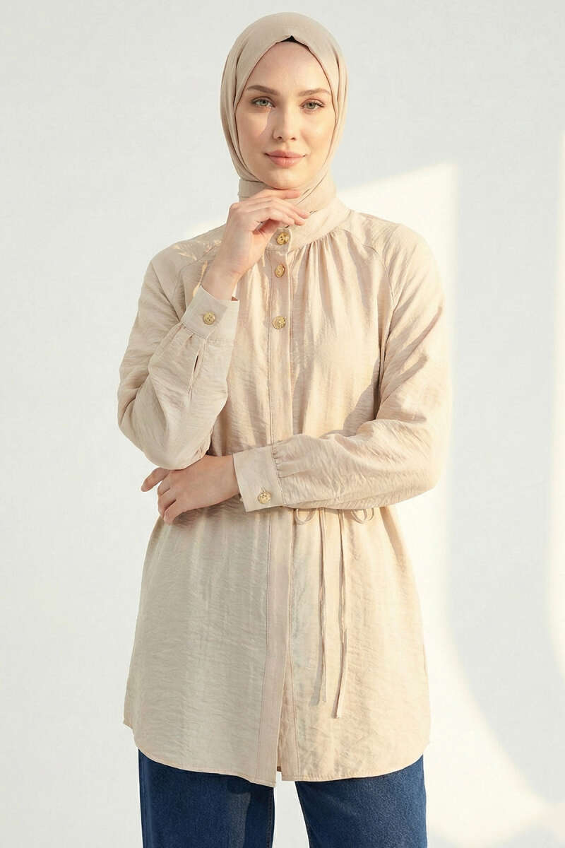 Hakim Yaka Patlı Gömlek Bej