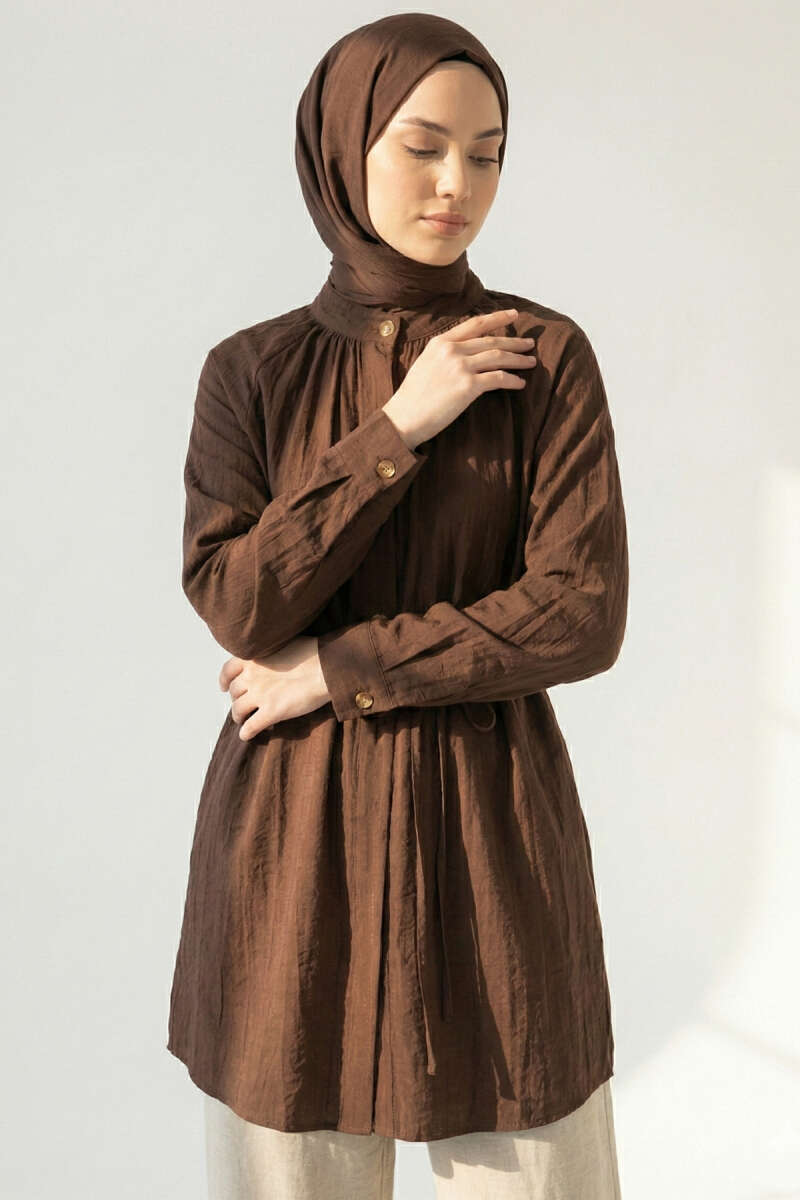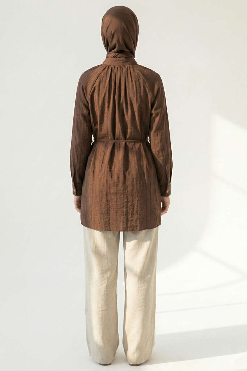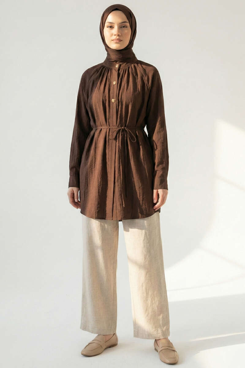 Hakim Yaka Patlı Gömlek Kahve