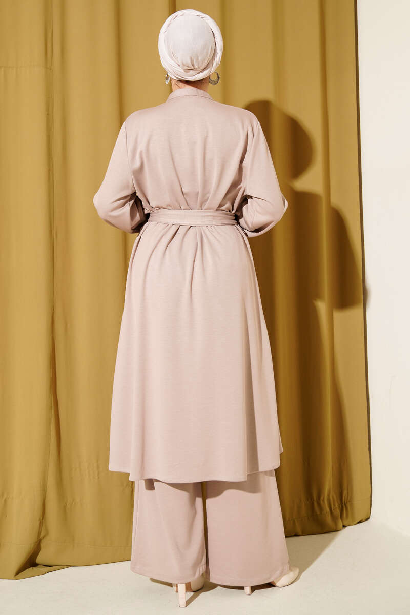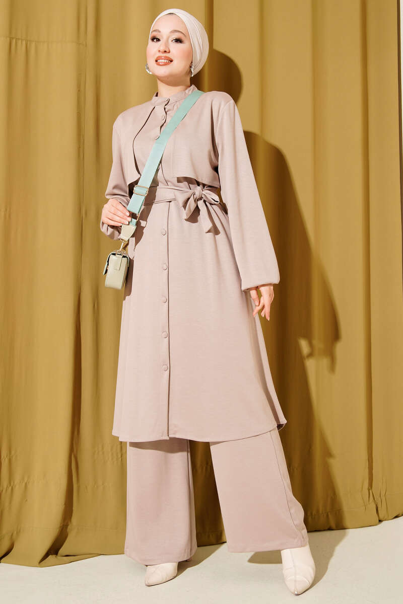 Hakim Yaka Pelerinli Loyşa İkili Takım Açık Lila
