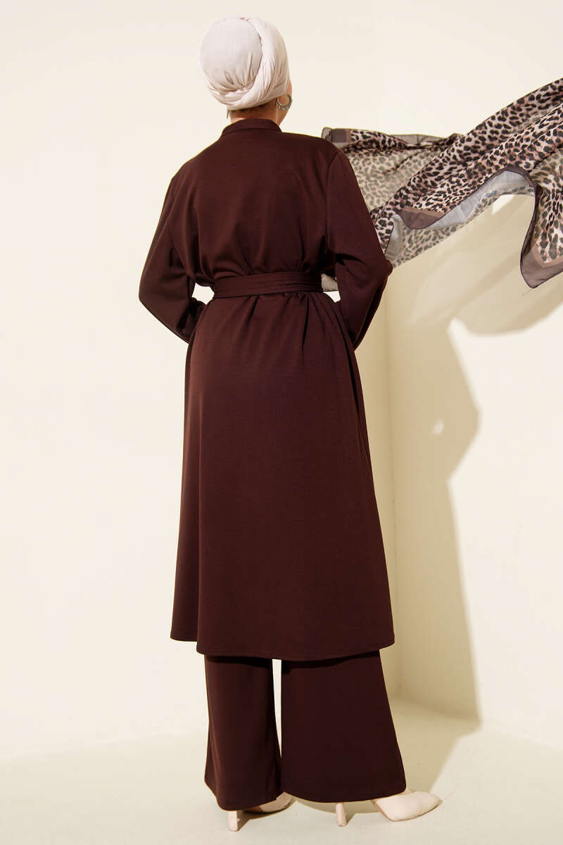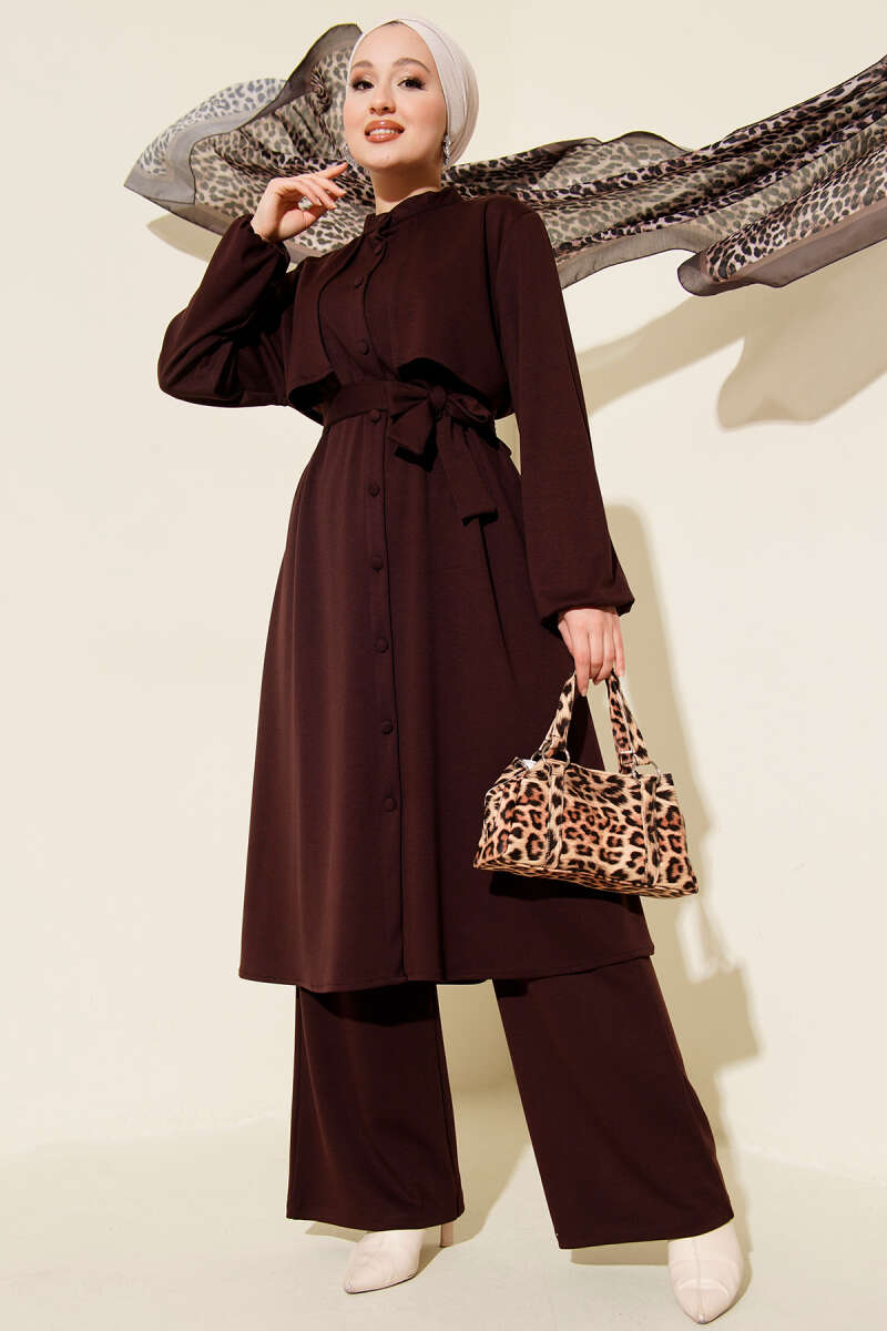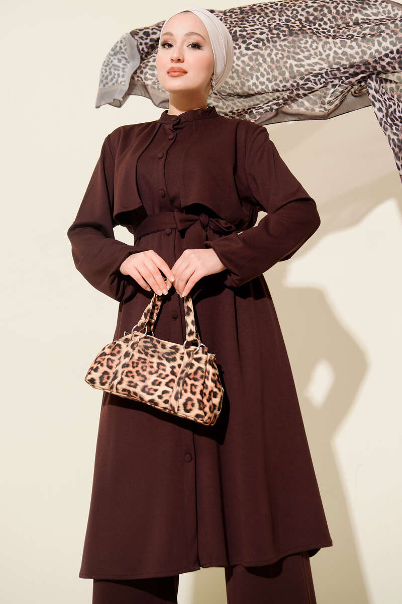 Loyşa Baskılı Pullu İkili Takım Kestane