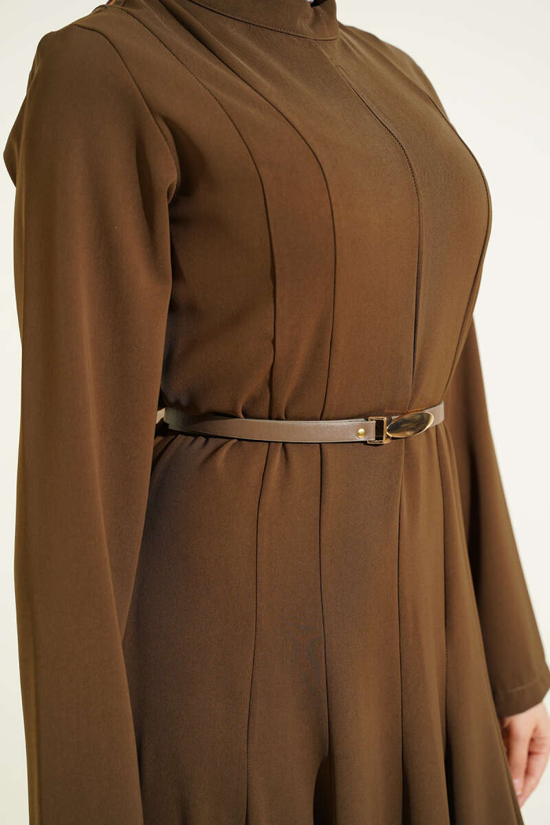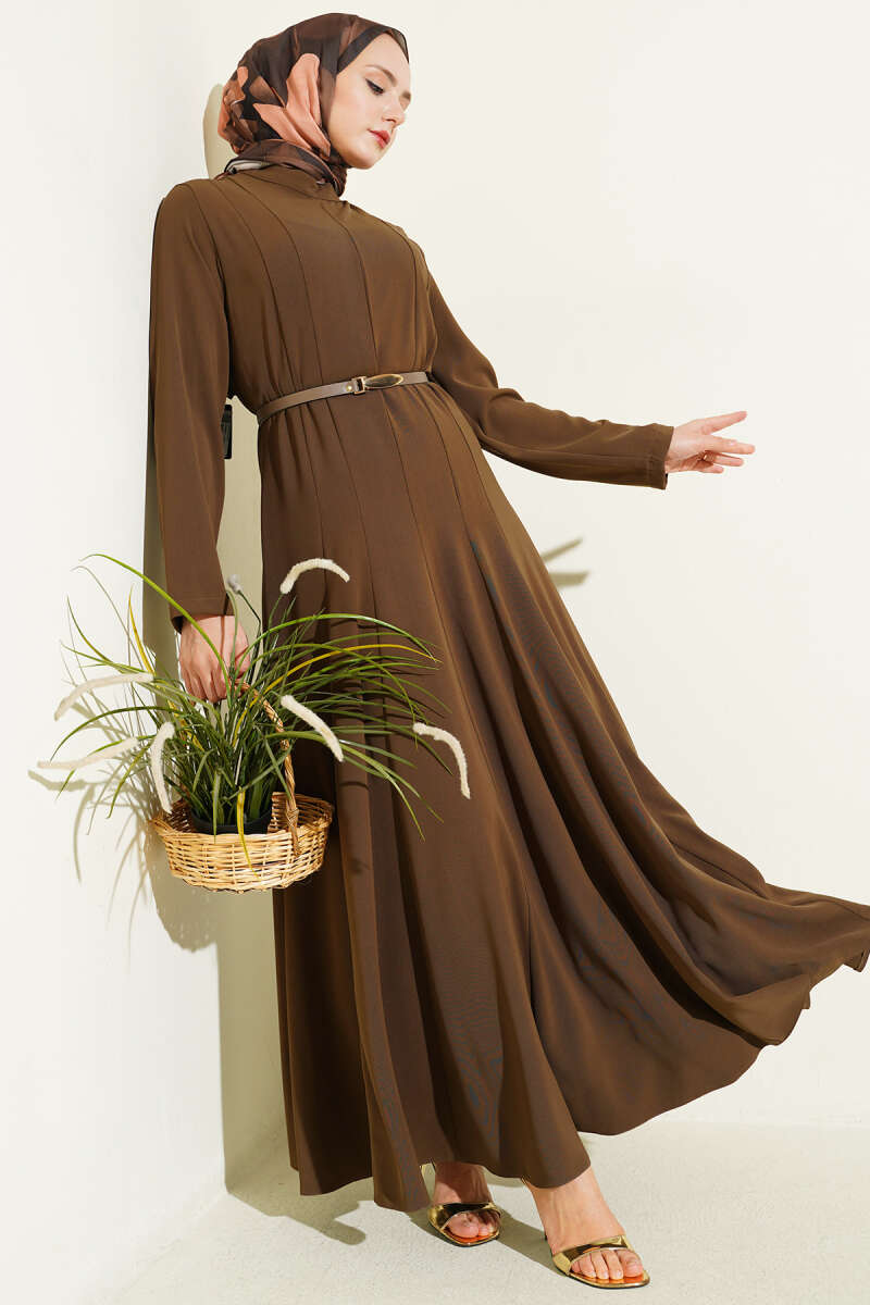 Hakim Yaka Pensli Kemerli Elbise Vizon