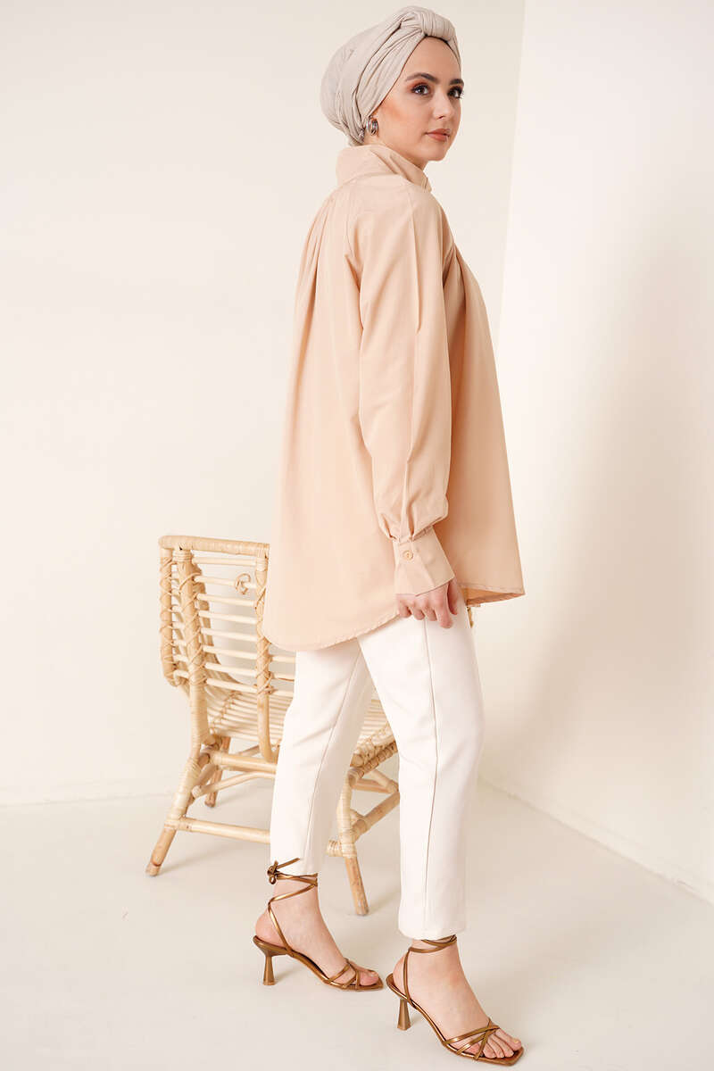 Hakim Yaka Taş Detaylı Tunik Bej