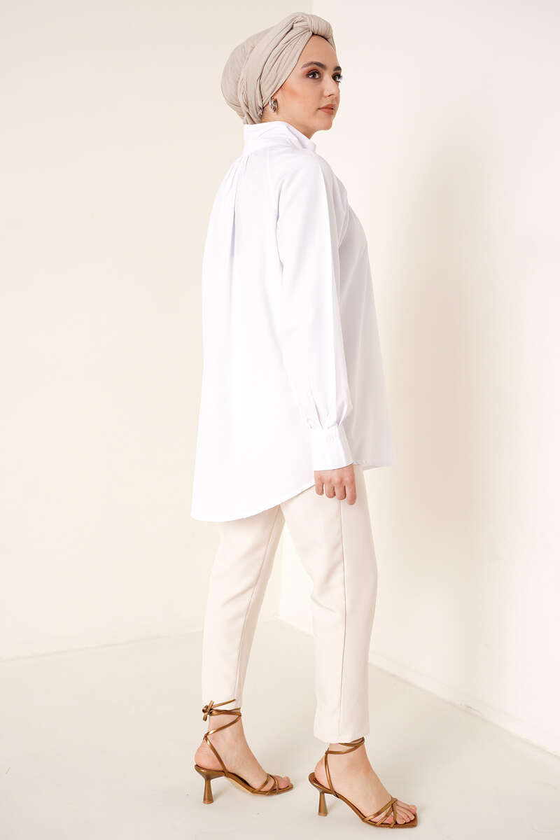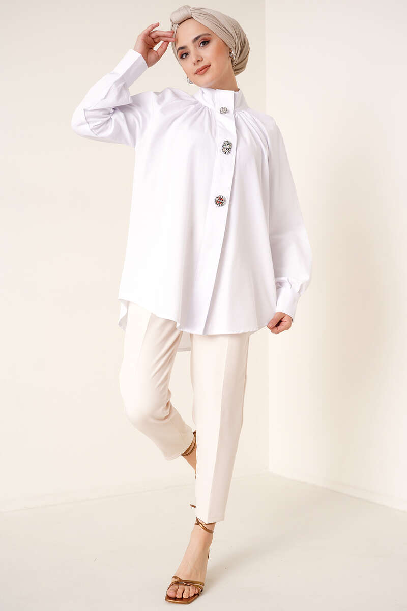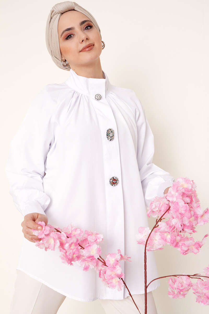 Hakim Yaka Taş Detaylı Tunik Beyaz