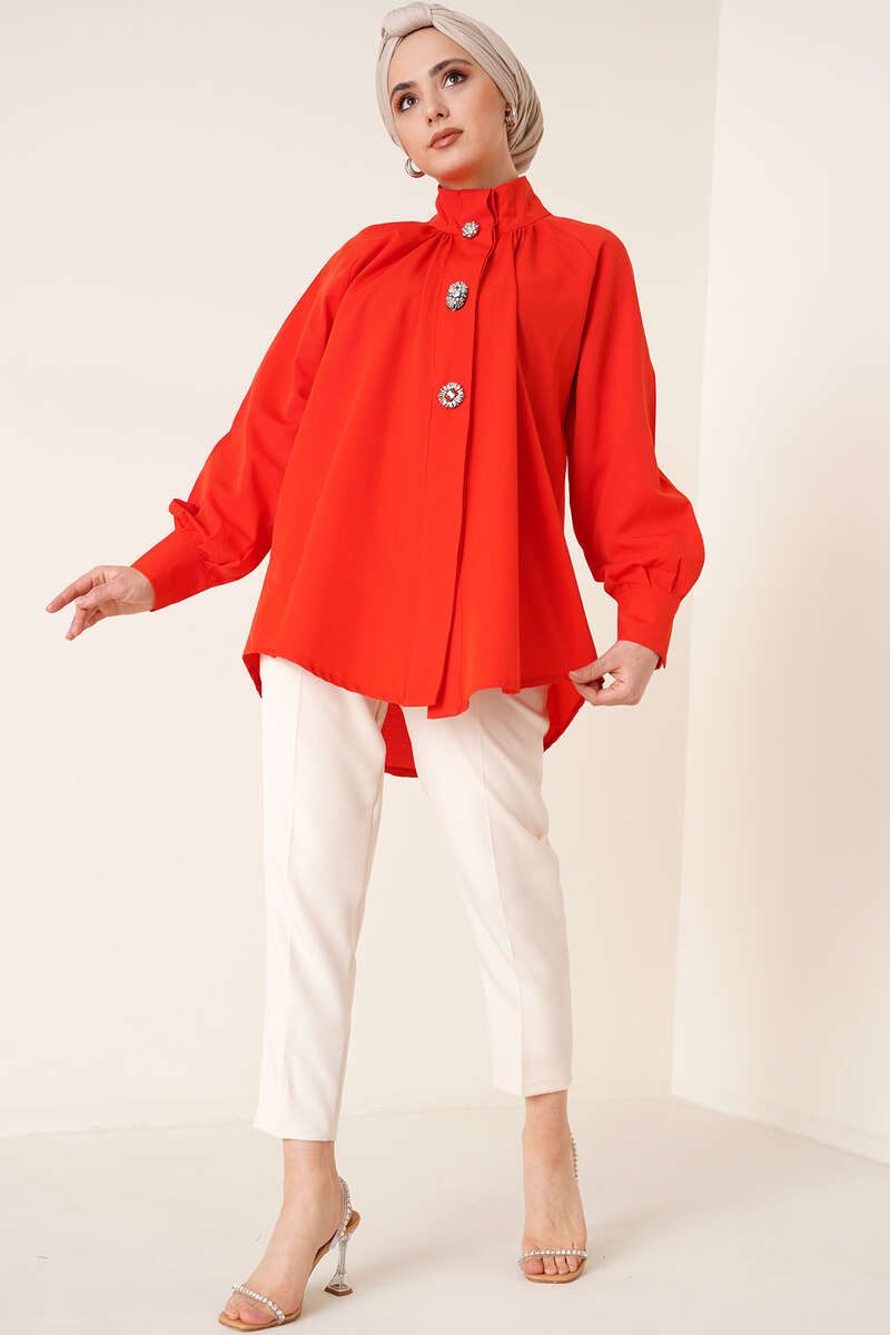 Yeni sezon tuniğimiz dikkat çeken tasarımıyla sizler için geldi. Tuniğimizin önü gizli patlıdır. Parlak taş süslemeleri bulunmaktadır. Hakim yakadır. Arkası pile detaylıdır. Her kıyafetinizle rahatlıkla kombin yapabilirsiniz. Farklı renk seçenekleri mevcuttur.