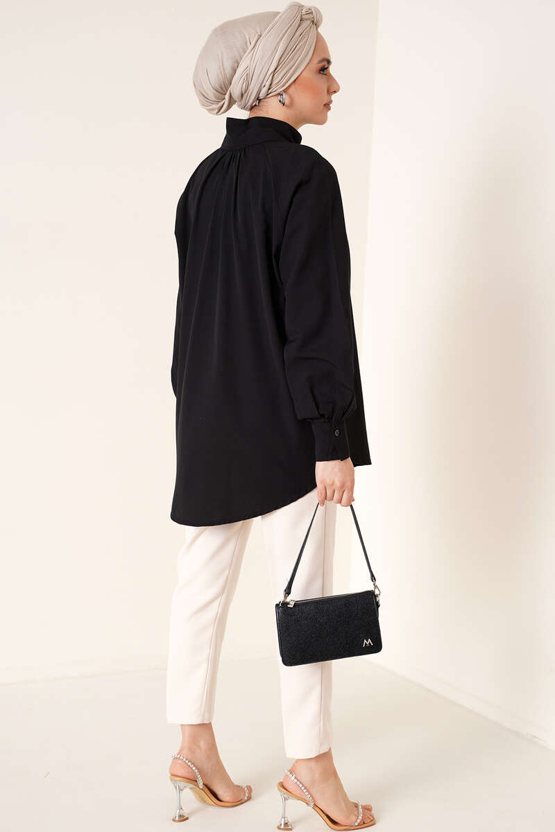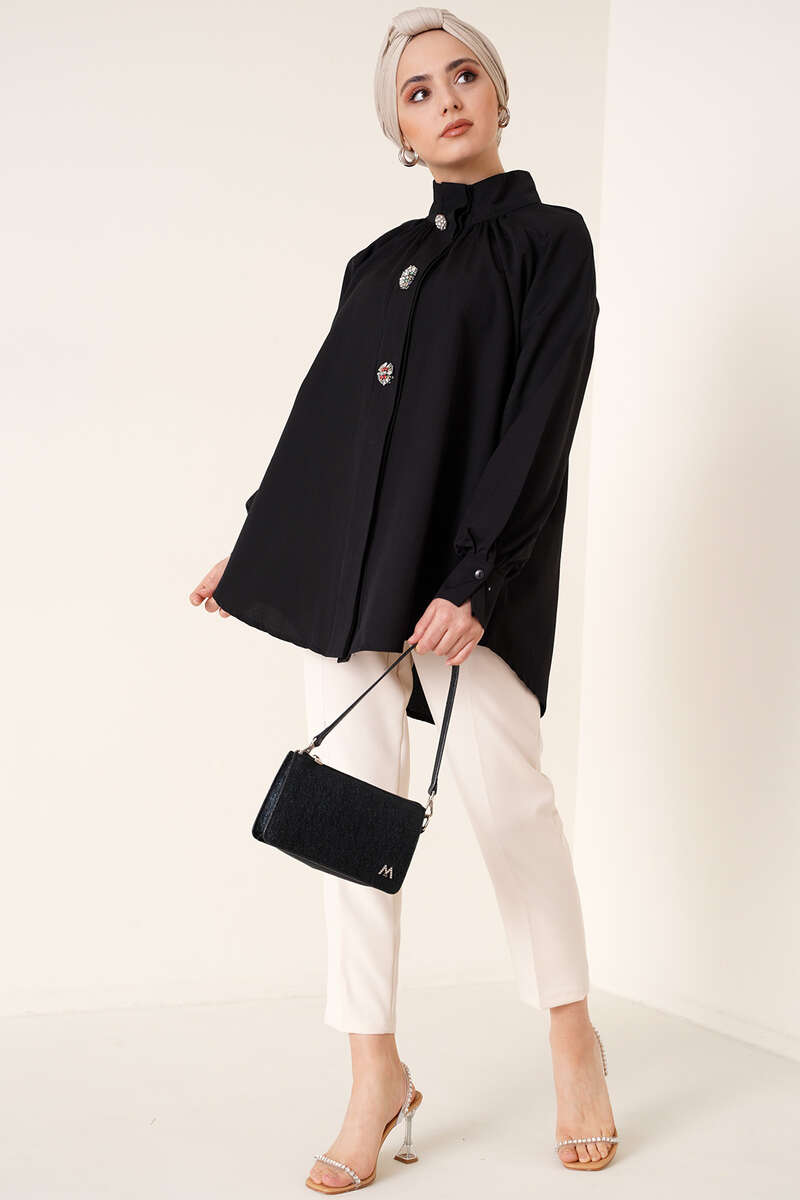 Hakim Yaka Taş Detaylı Tunik Siyah