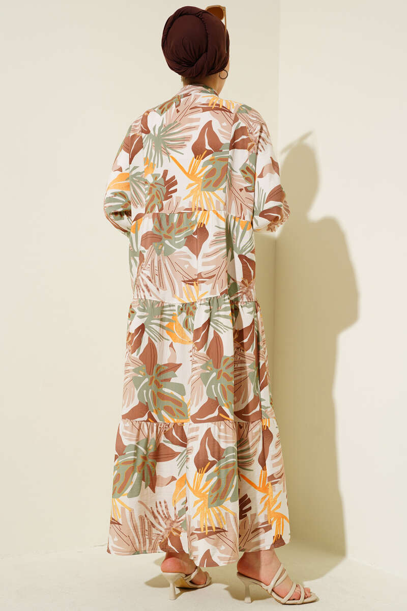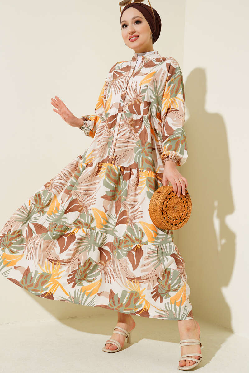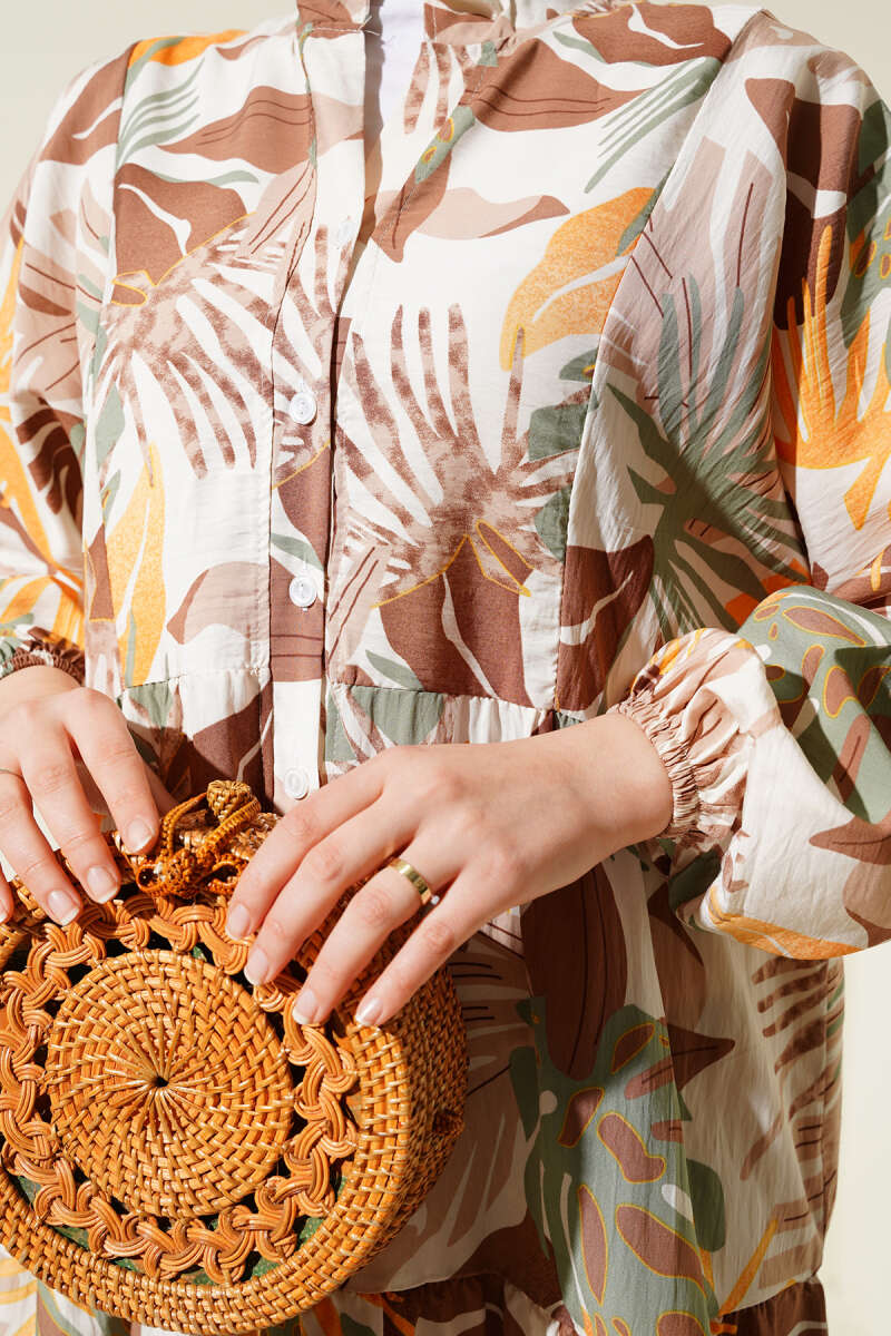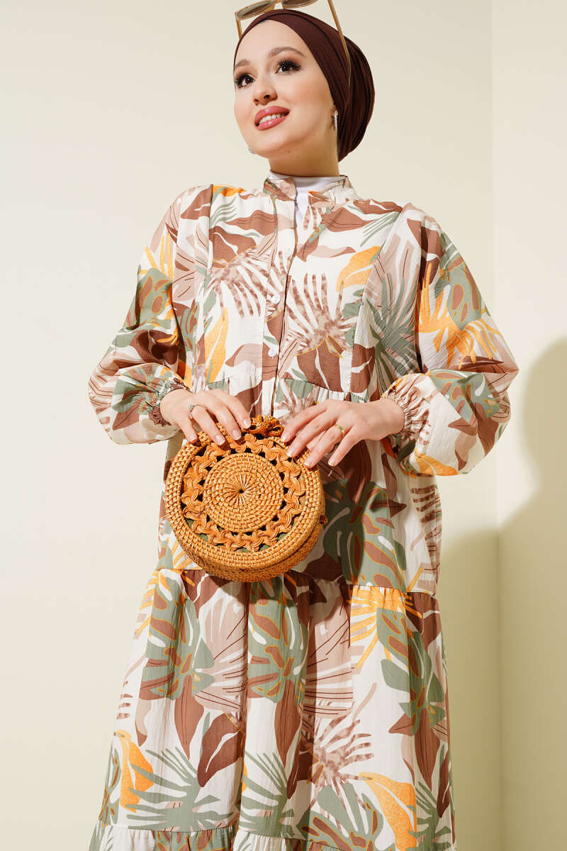 Kol Ucu Armalı İp Bağcıklı Elbise Kahve