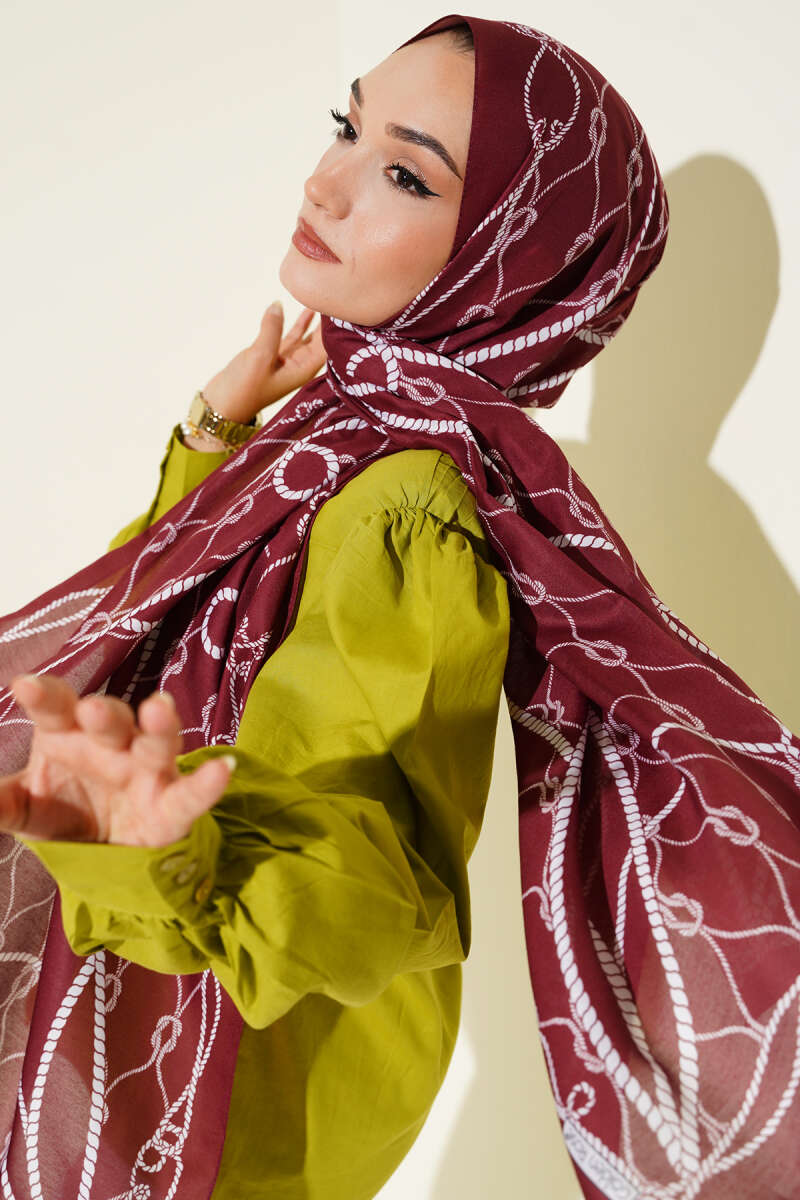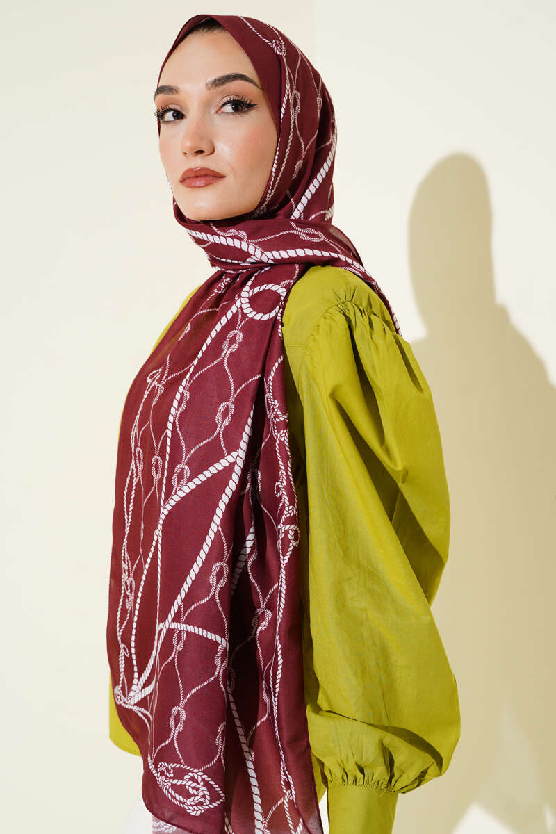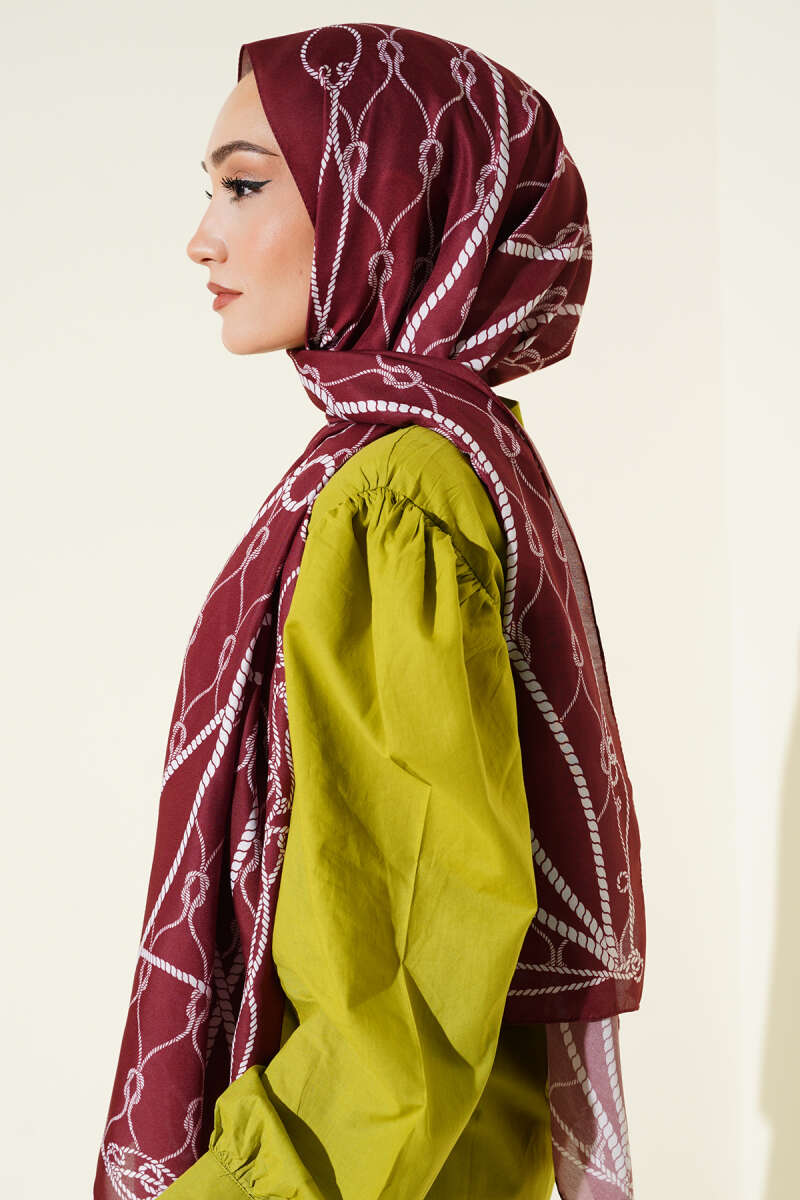 Halat Desenli Soft Şal Bordo
