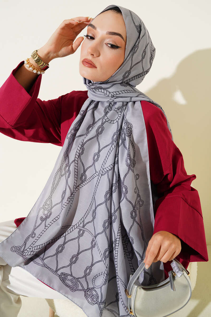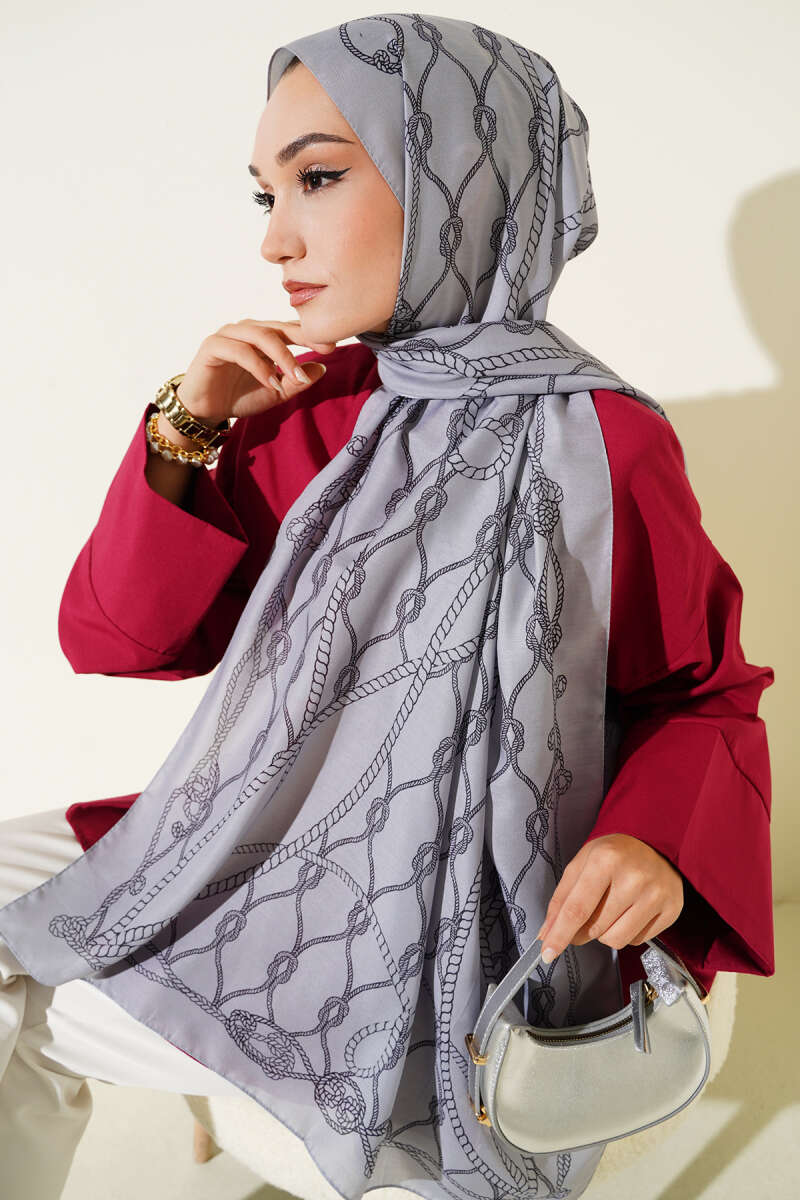 Paisley Desenli Soft Pamuk Eşarp Gri