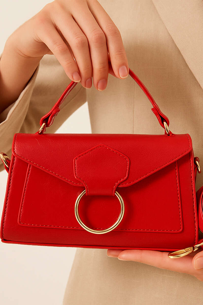 Dikiş Detaylı Kadın El Çantası Kırmızı