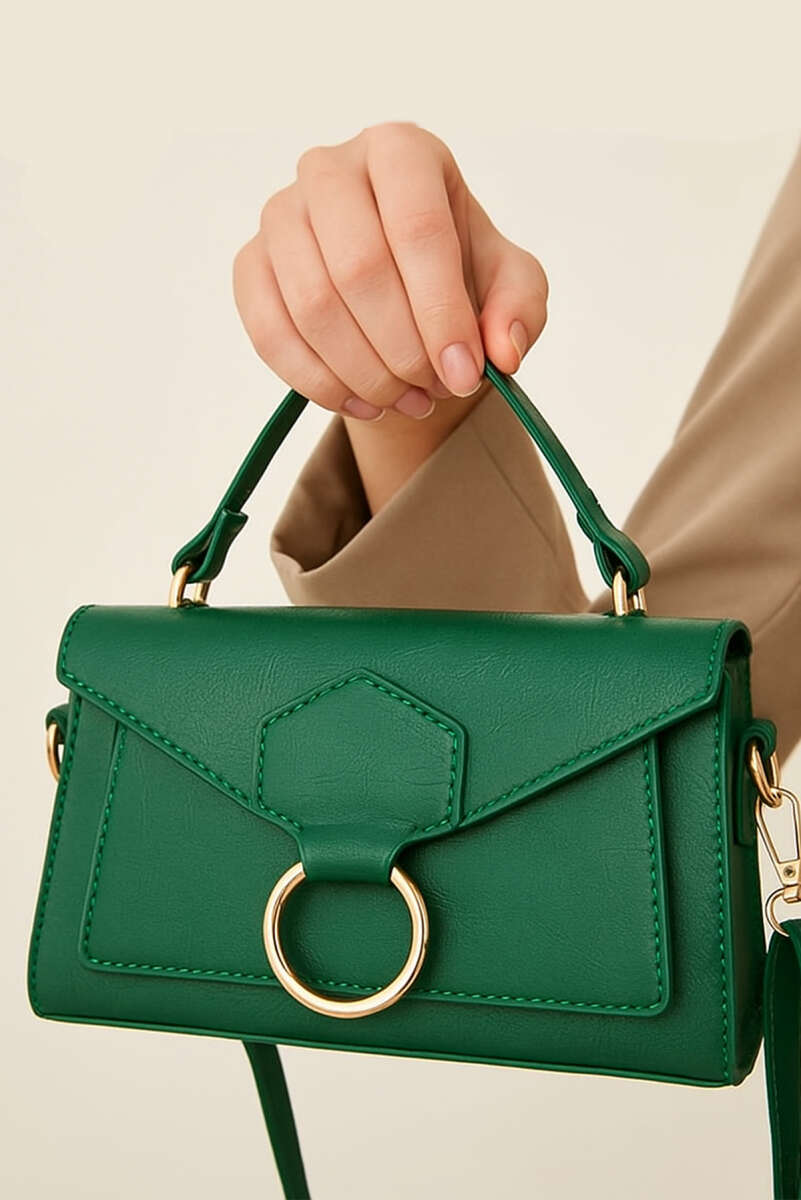 Dikiş Detaylı Kadın El Çantası Yeşil