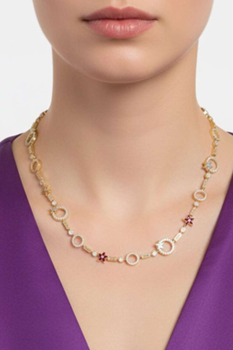 Oval Taşlı Detaylı Zincir Kolye Gold