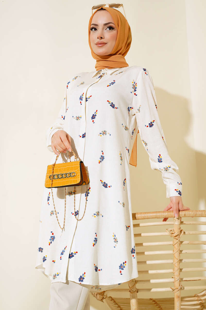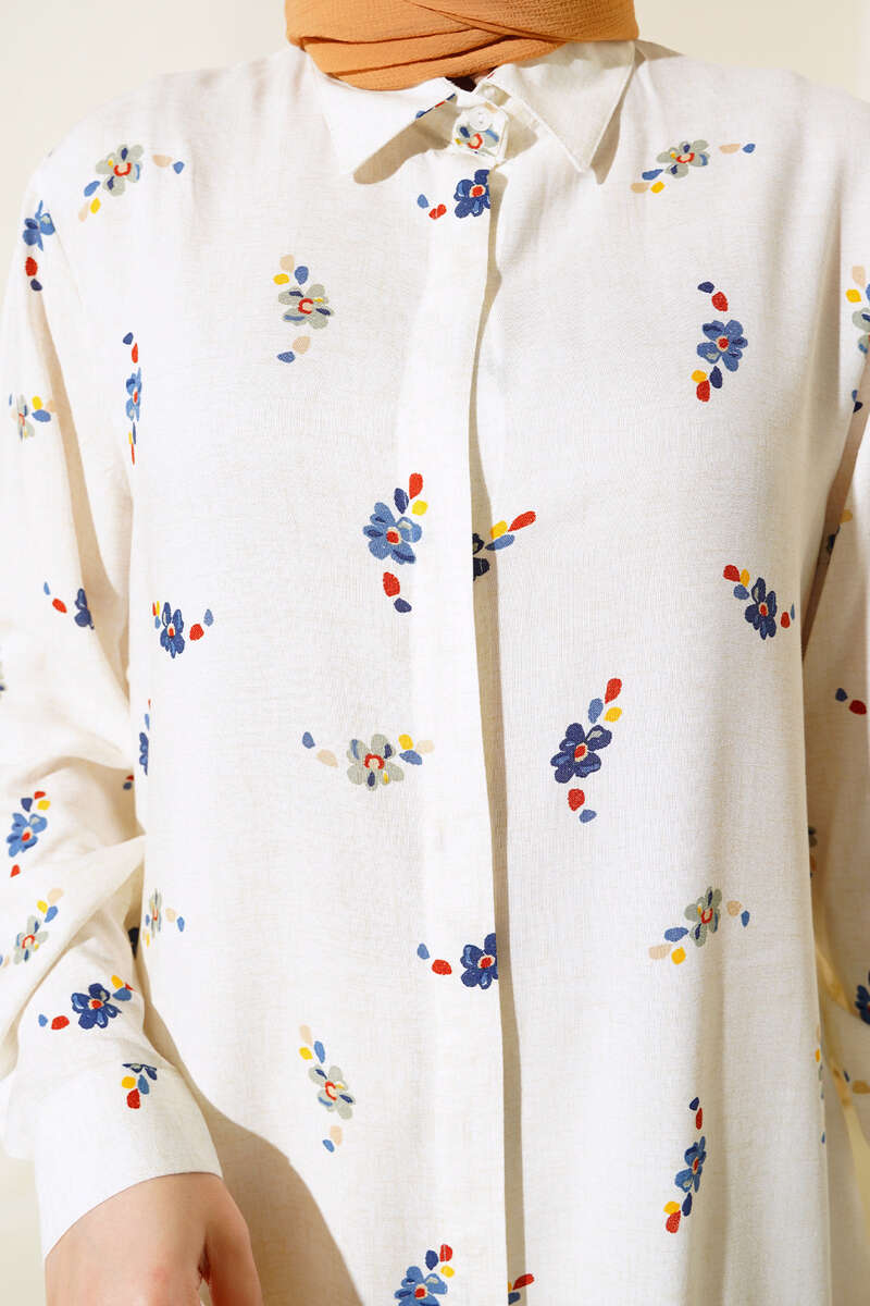 Hareketli Desen Serisi Gömlek Ekru Çiçekli