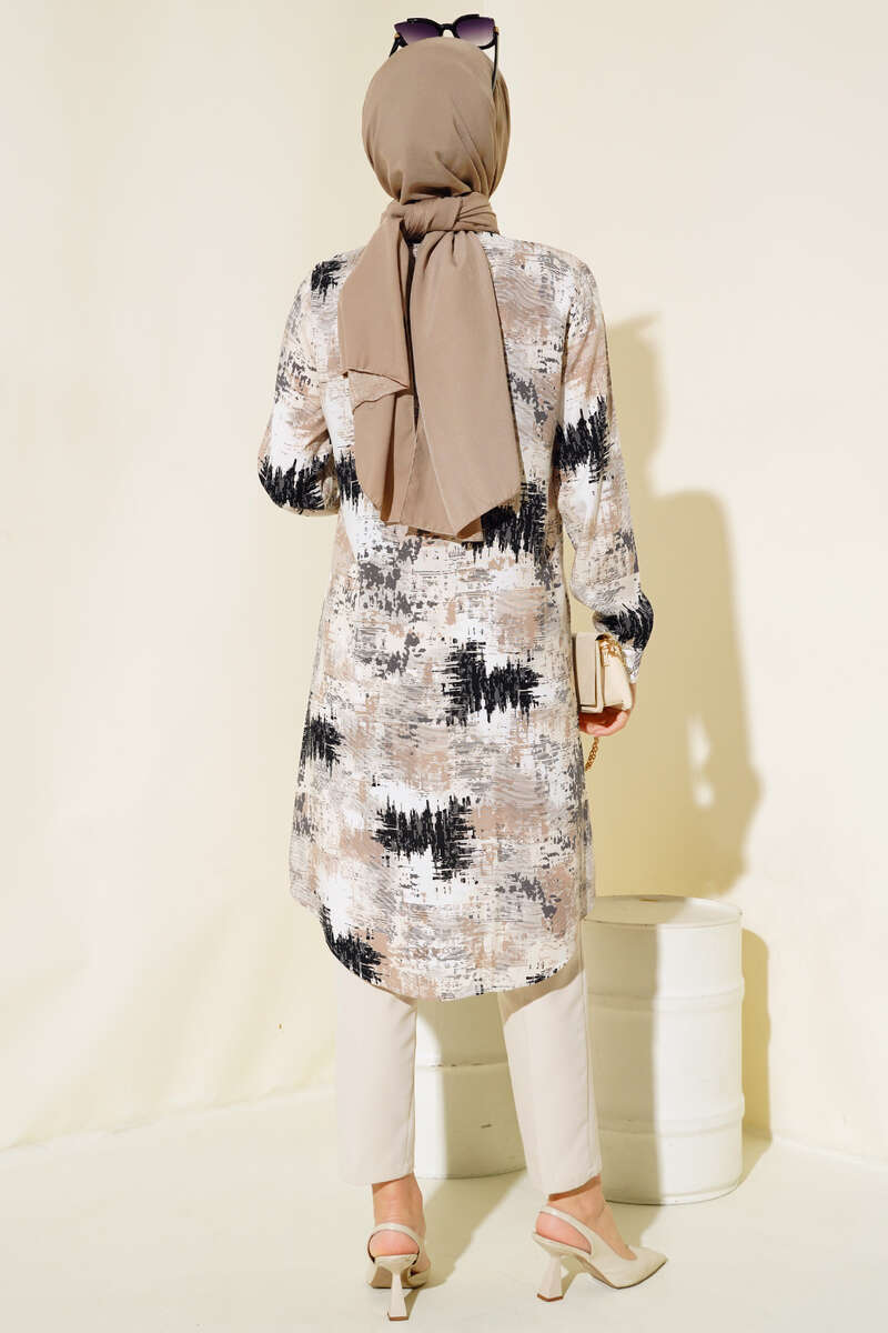 Hareketli Desen Serisi Gömlek Latte Siyah