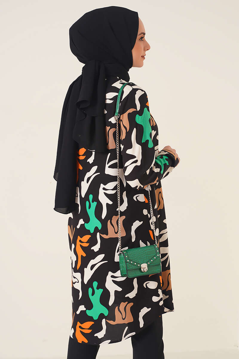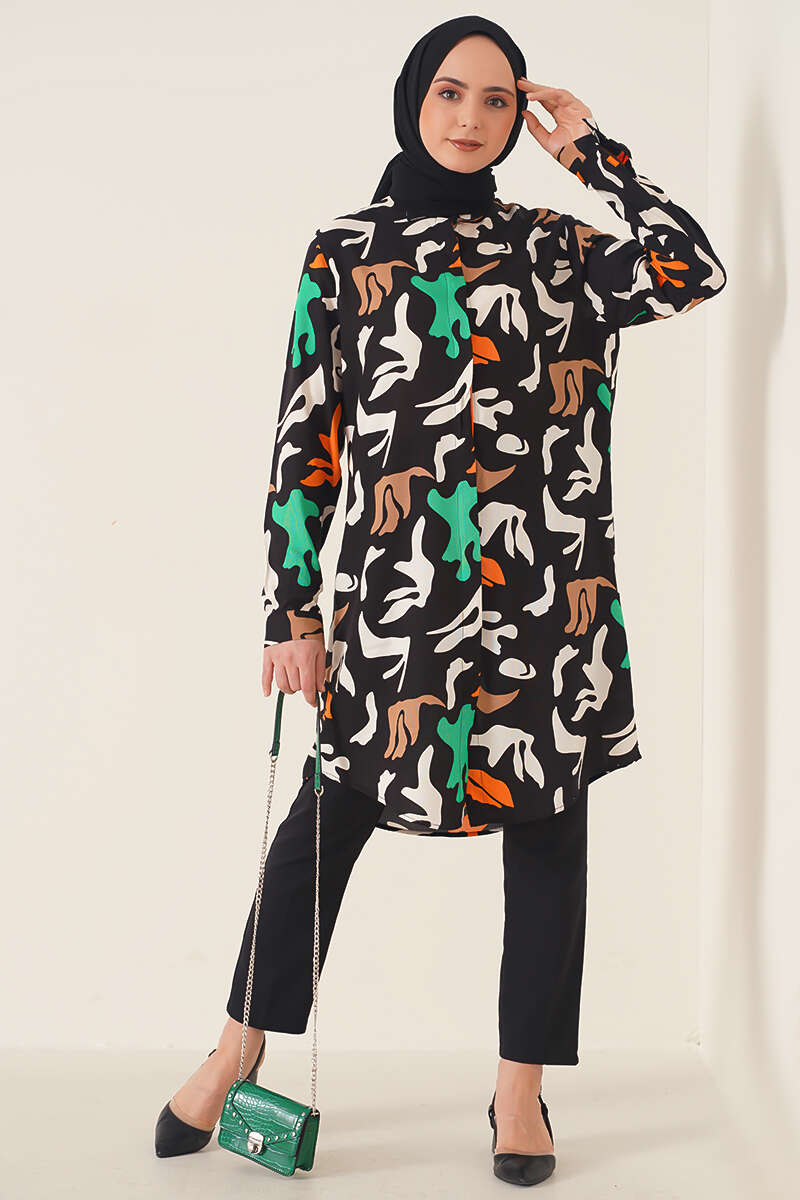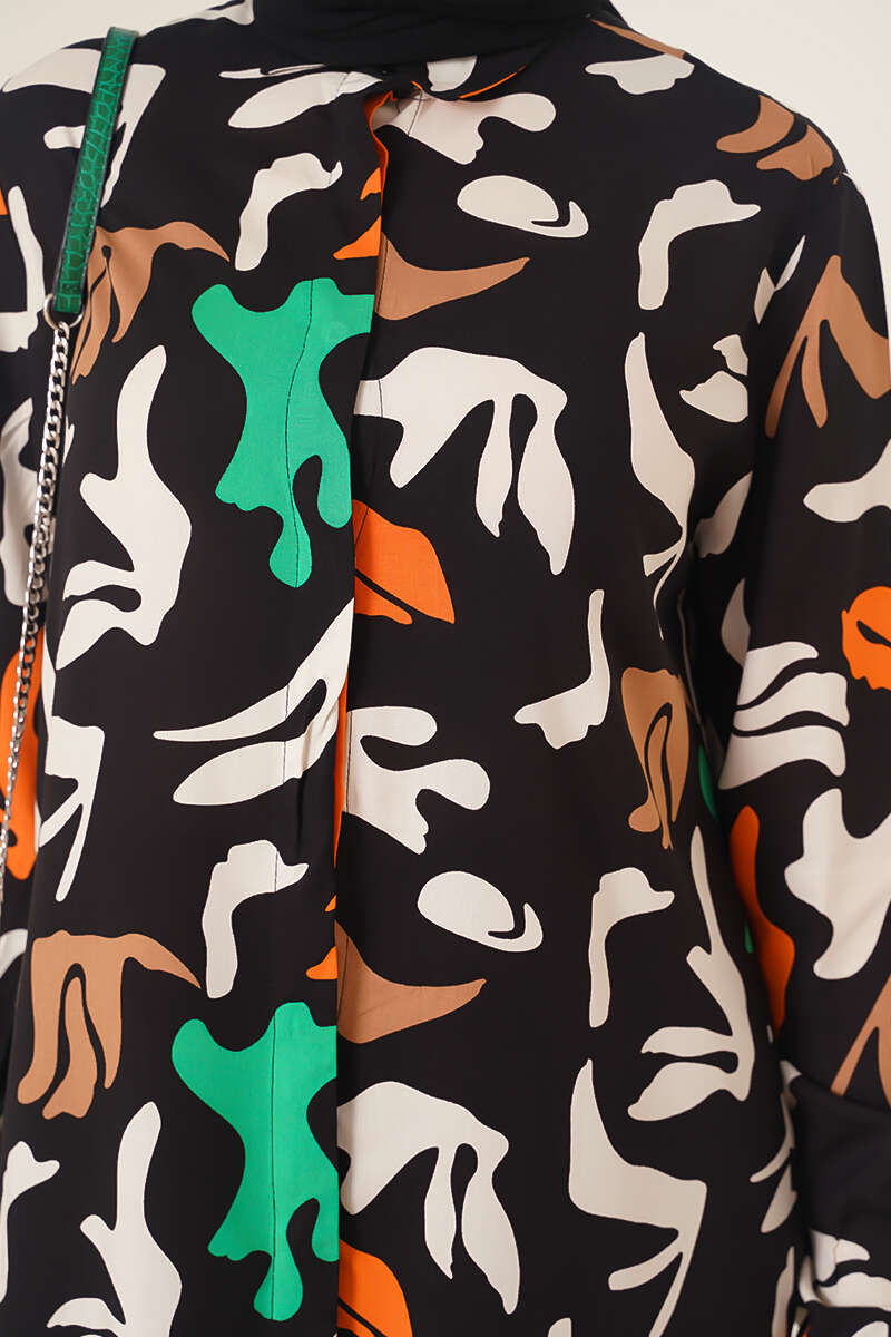 Hareketli Desen Serisi Gömlek Siyah Ekru