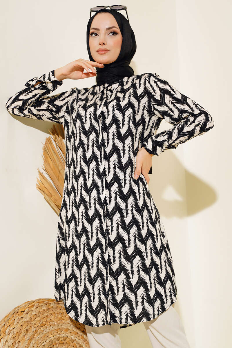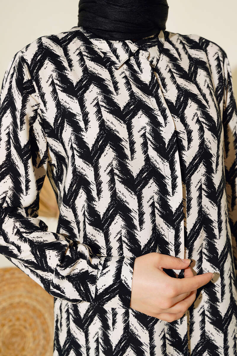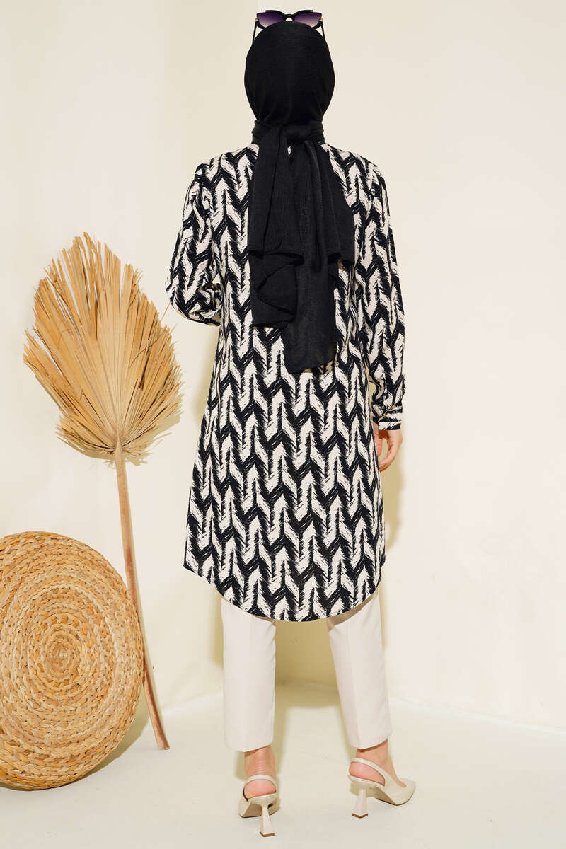 Hareketli Desen Serisi Gömlek Siyah Krem