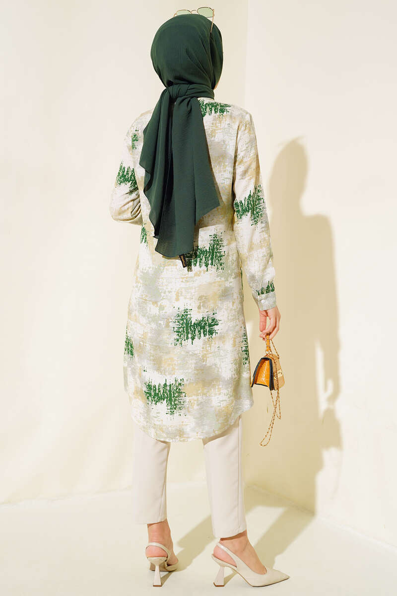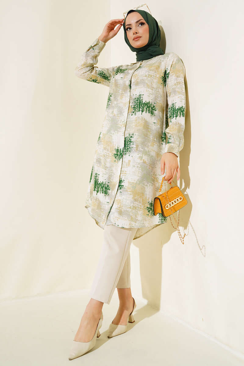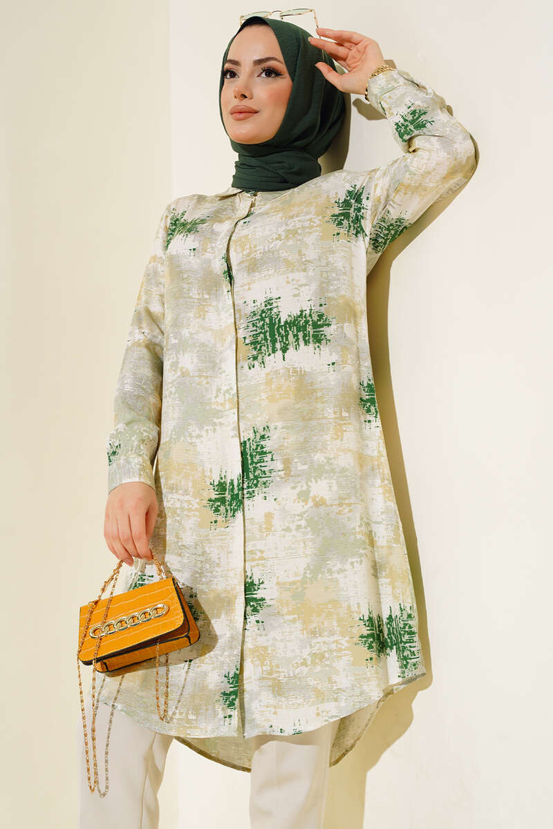 Hareketli Desen Serisi Gömlek Yeşil Bej
